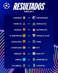 Resultados Jornada 2 Champions League 2025, 1 de octubre