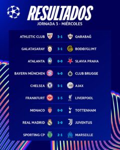 Resultados Jornada 3 Champions League 2025, 22 de octubre