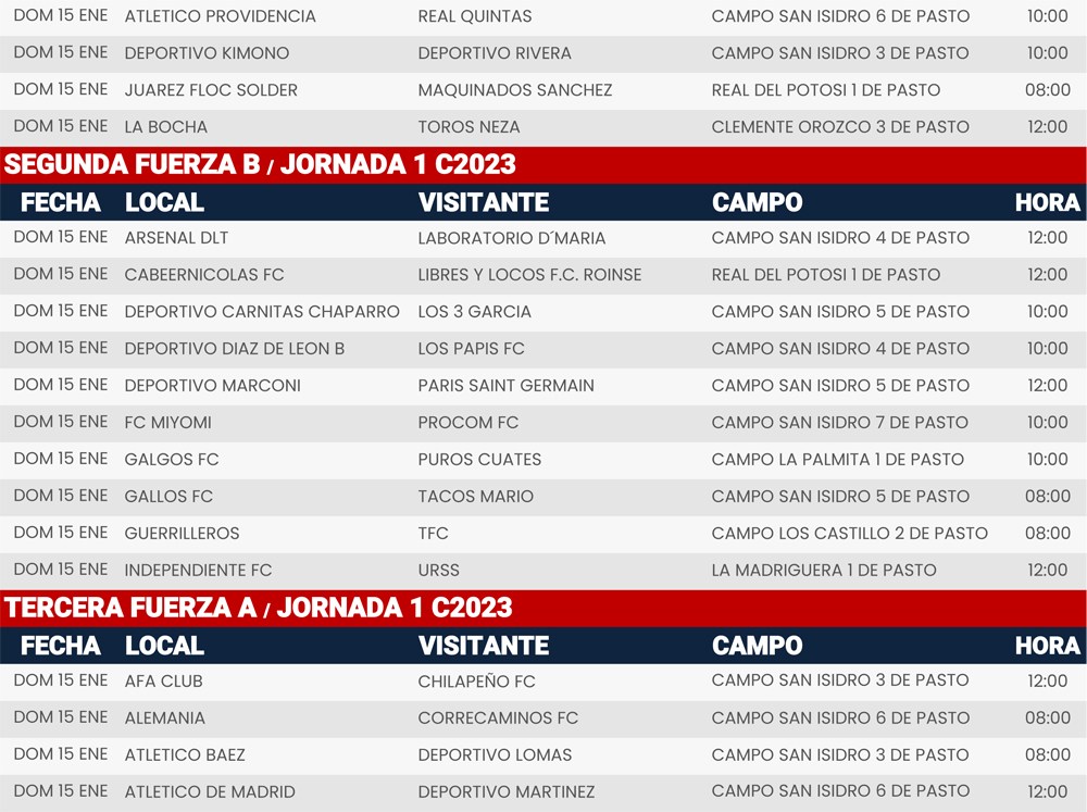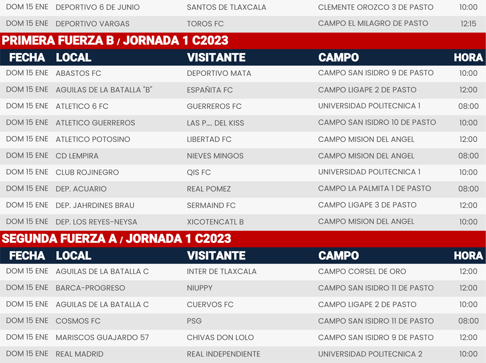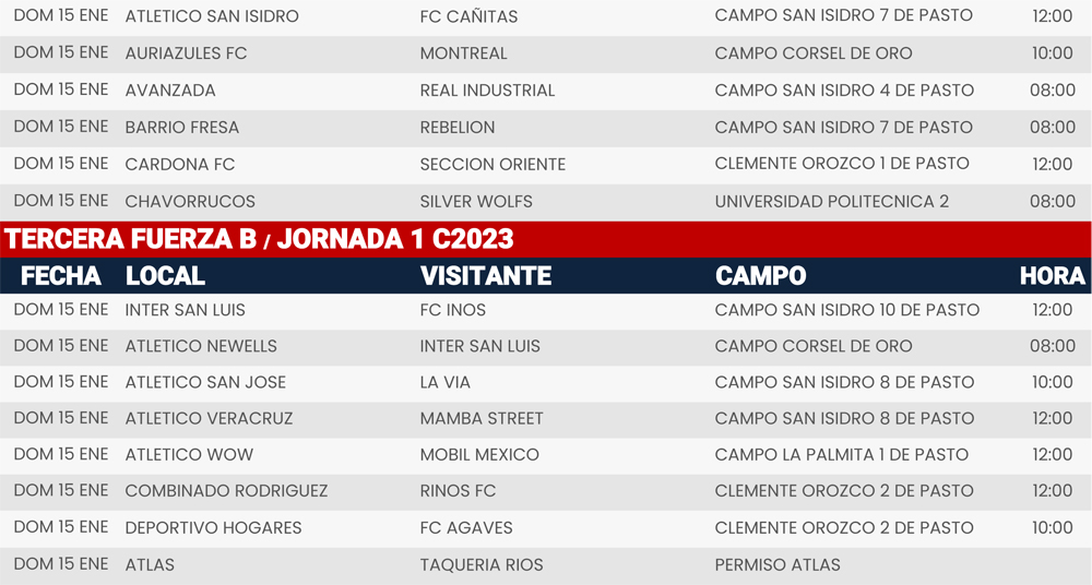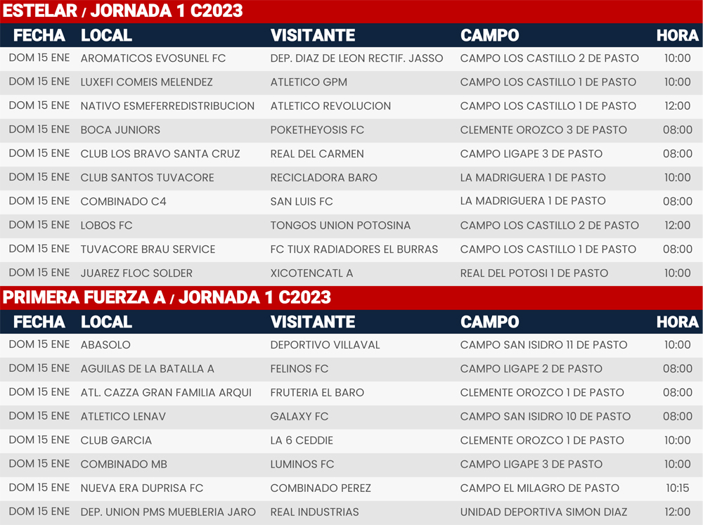 Resultados Jornada 1 Super Liga Zona Industrial C2023