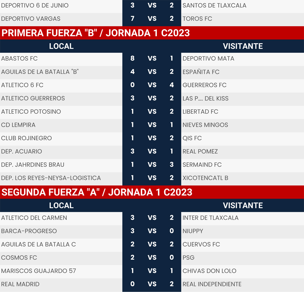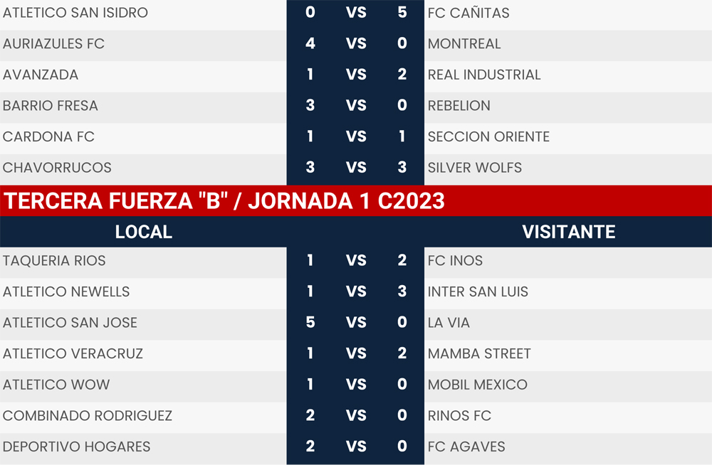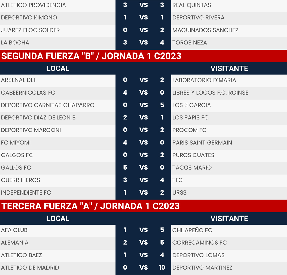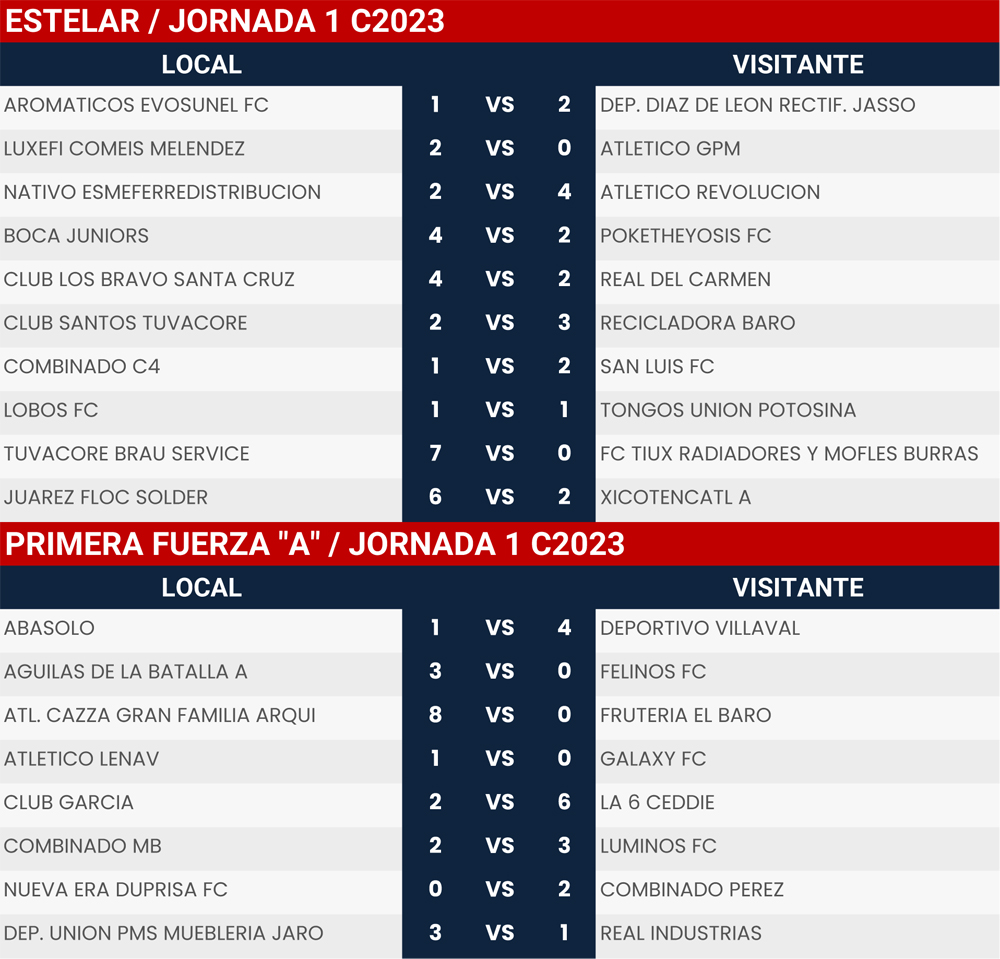 Resultados Jornada 1 Super Liga Zona Industrial C2023