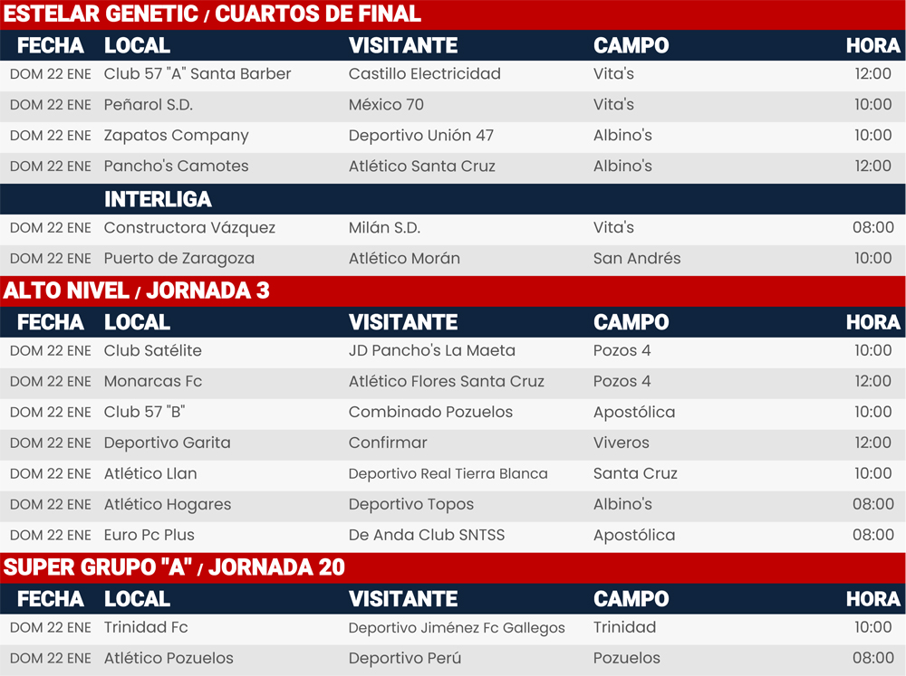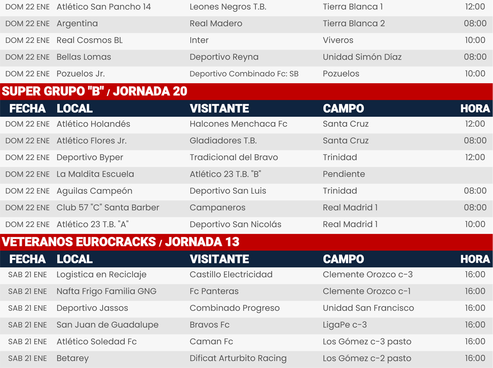 Rol de juegos 21 y 22 de enero de 2023, Liga Central