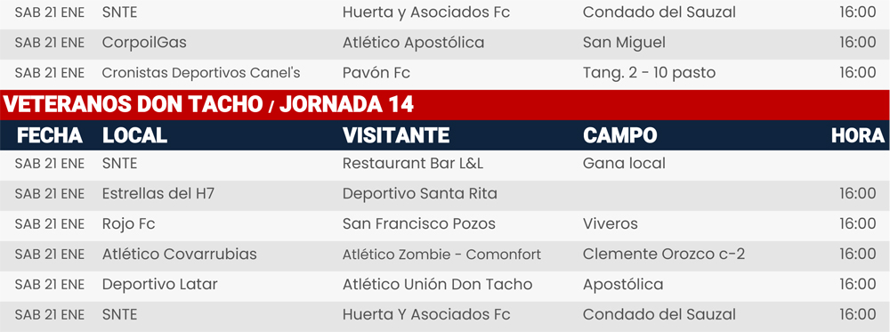 Resultados 14 y 15 de enero de 2023, Liga Central