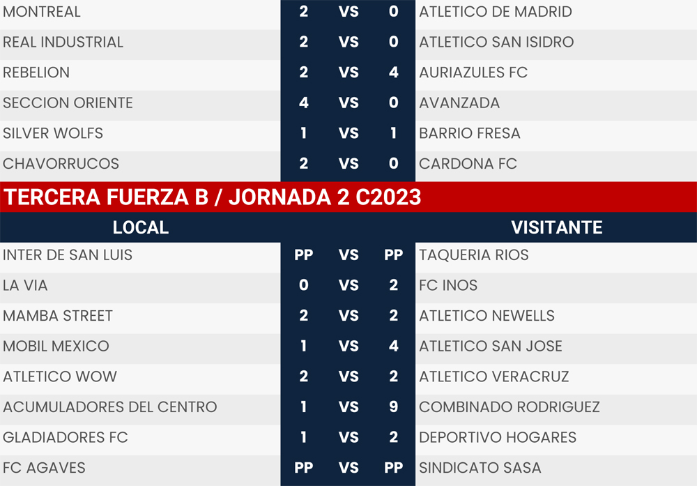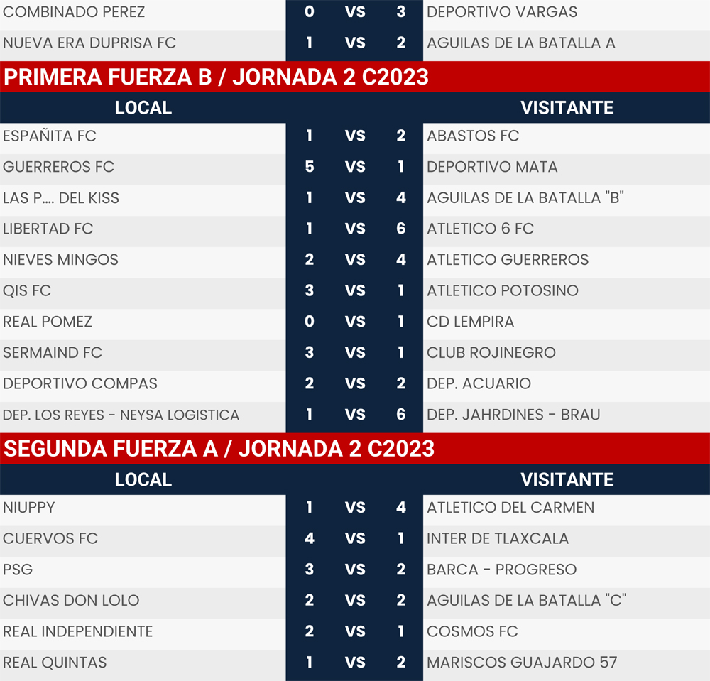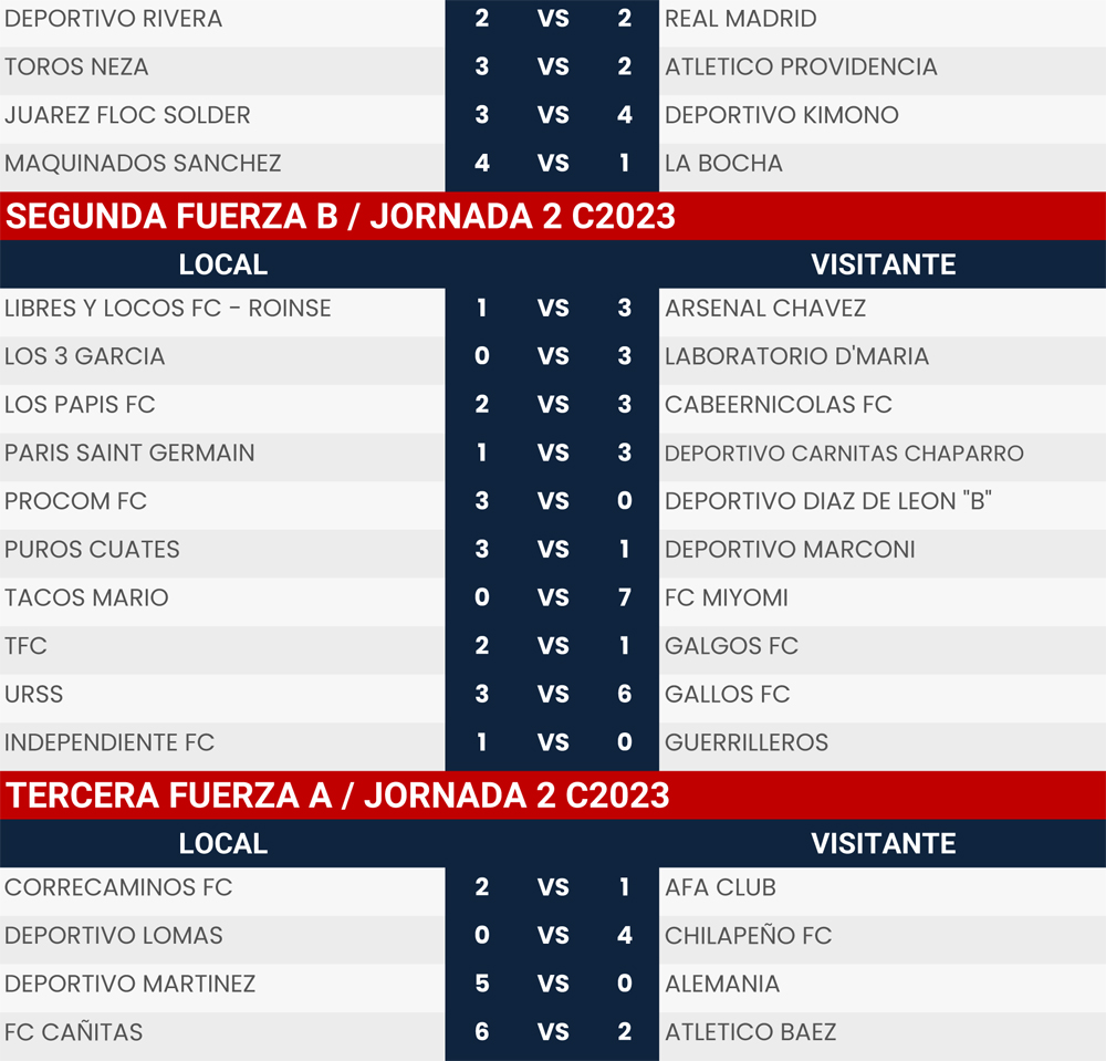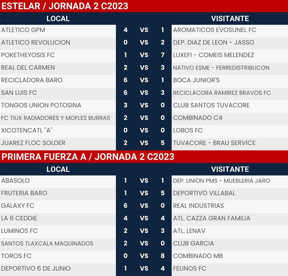Resultados Jornada 2 Super Liga Zona Industrial C2023
