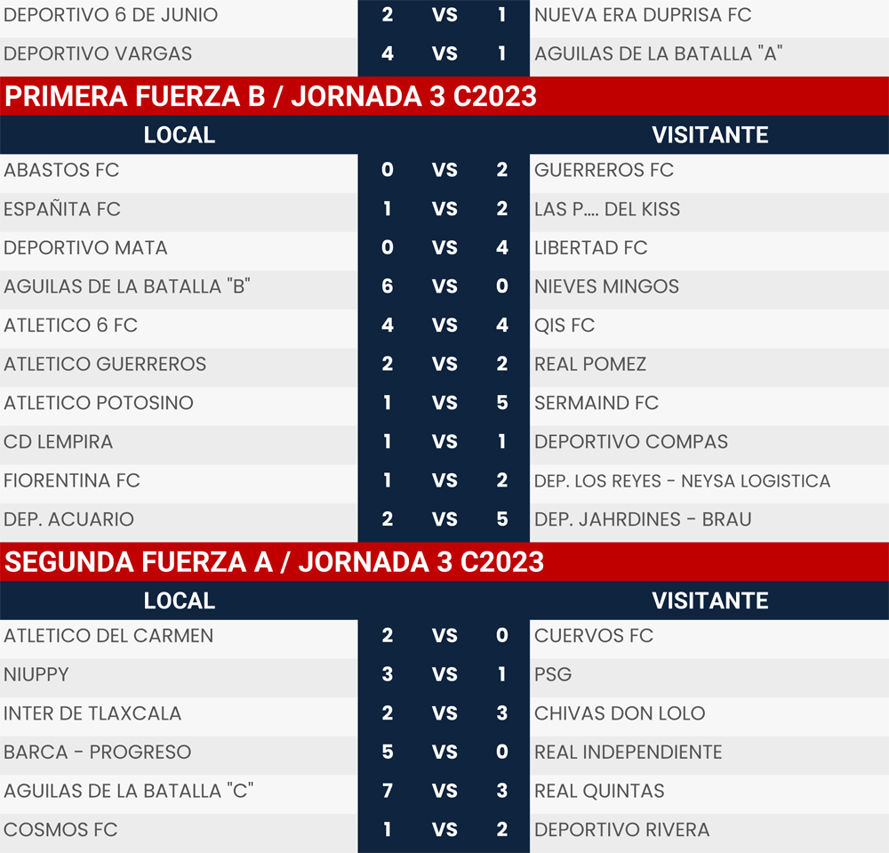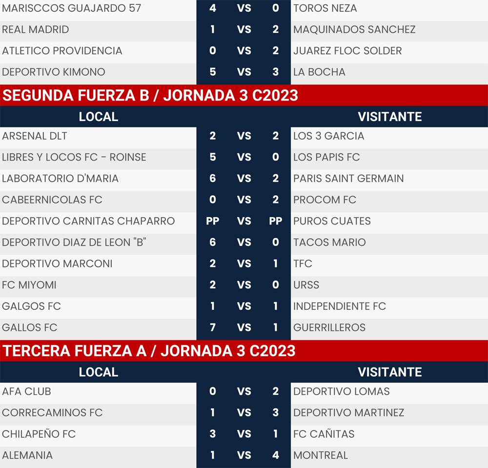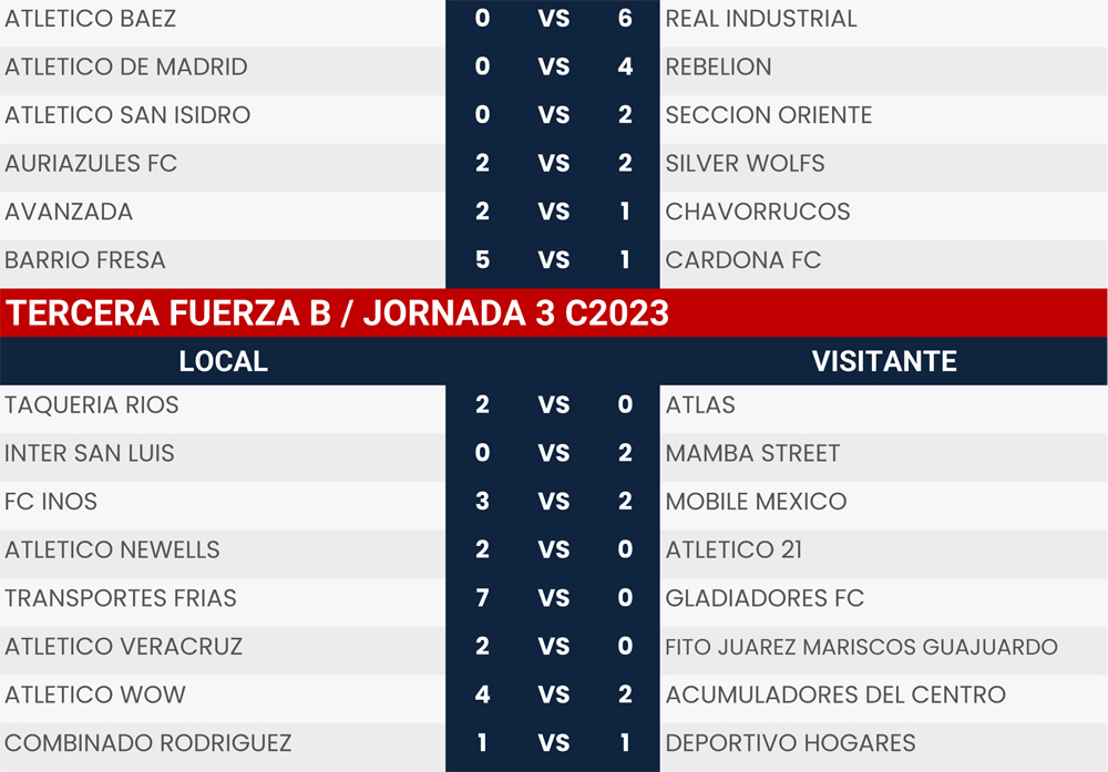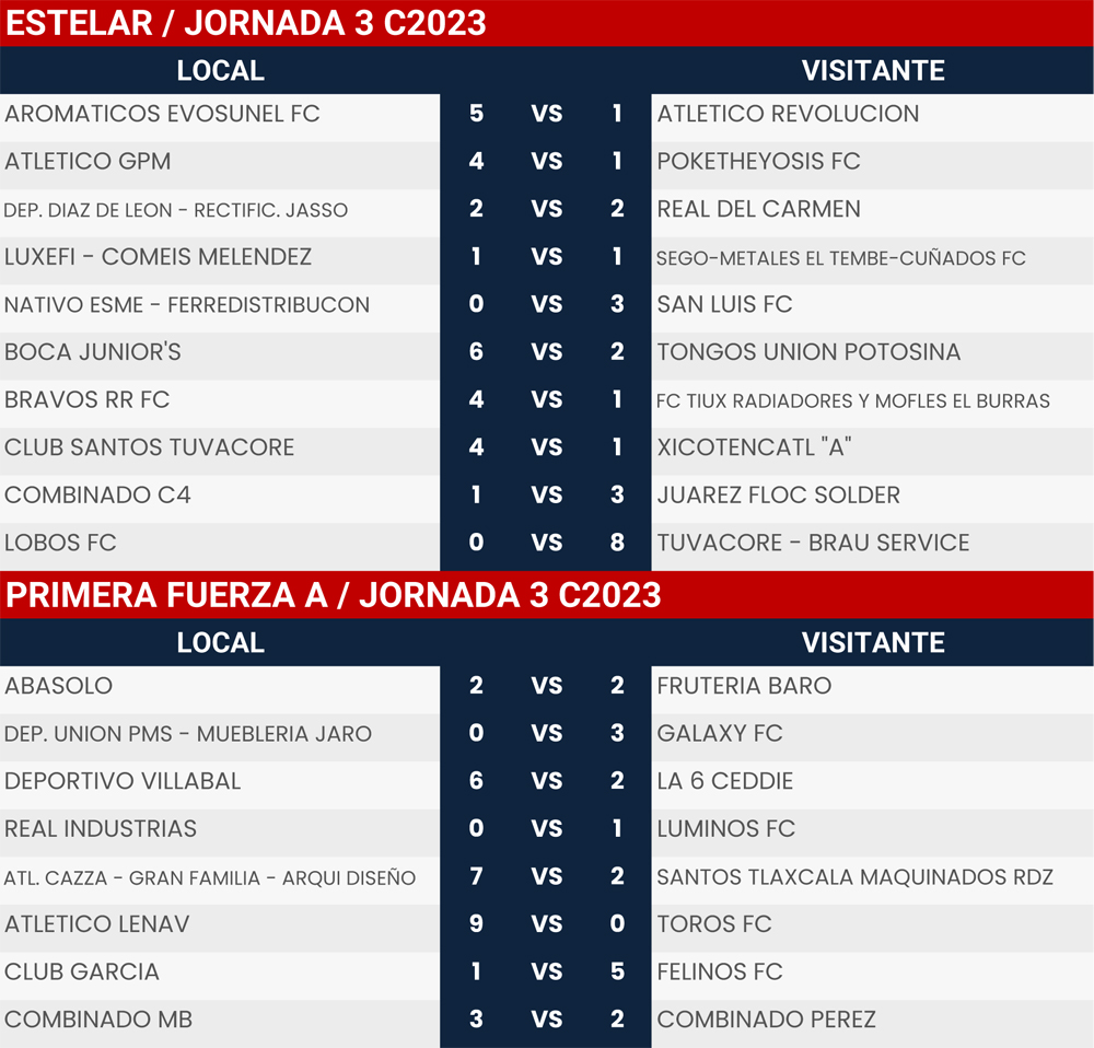 Resultados Jornada 3, Super Liga Zona Industrial C2023