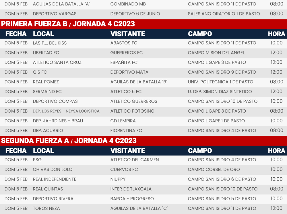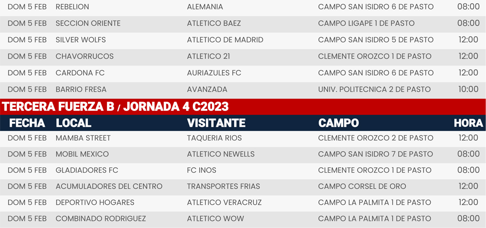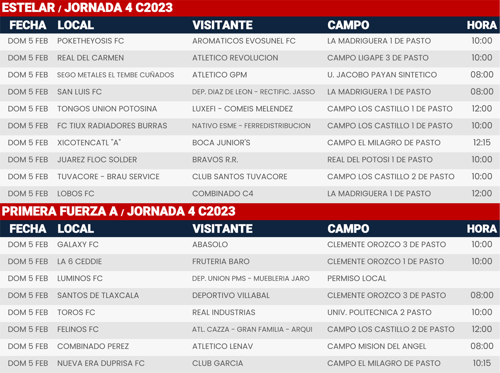 Jornada 4, Super Liga Zona Industrial C2023