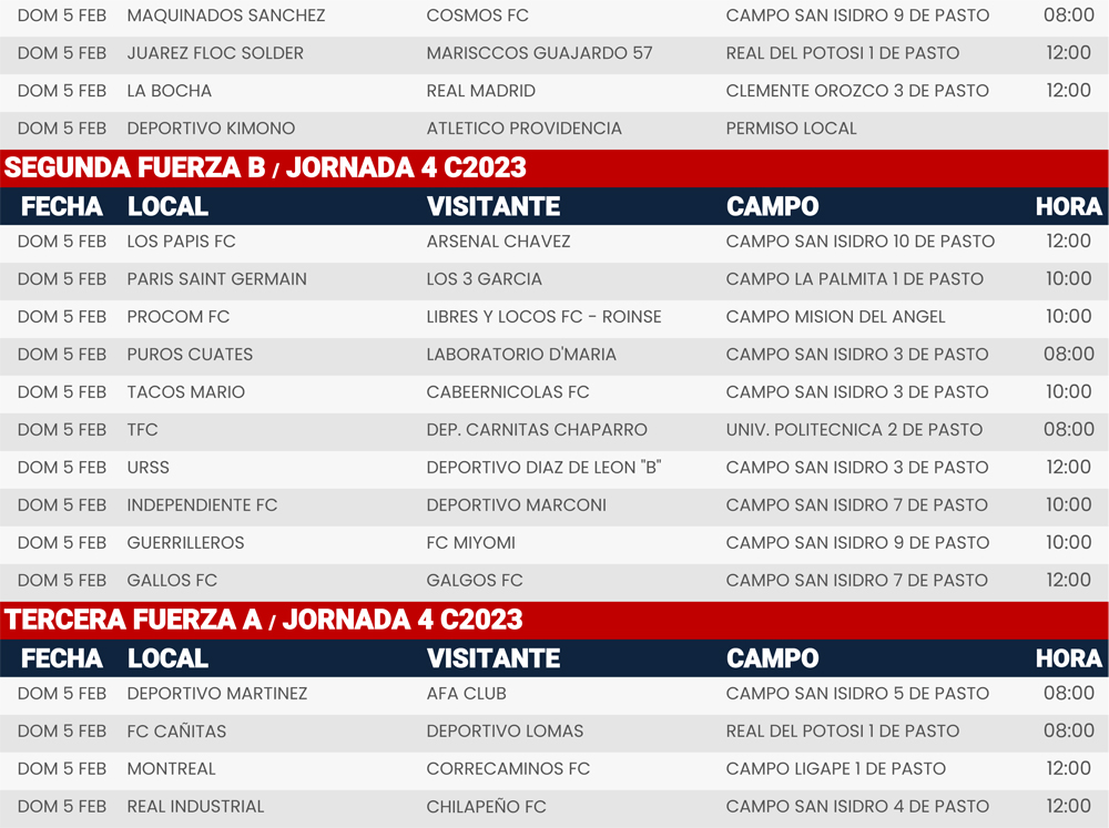 Resultados Jornada 4, Super Liga Zona Industrial C2023