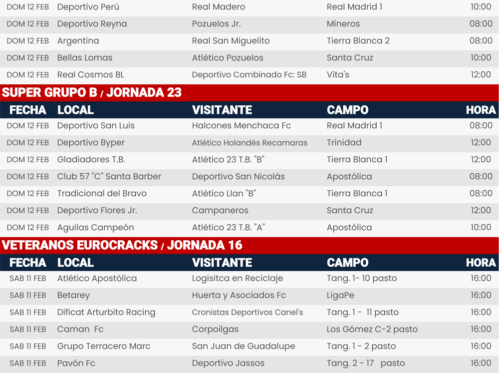 Rol de juegos 11 y 12 de febrero de 2023, Liga Central