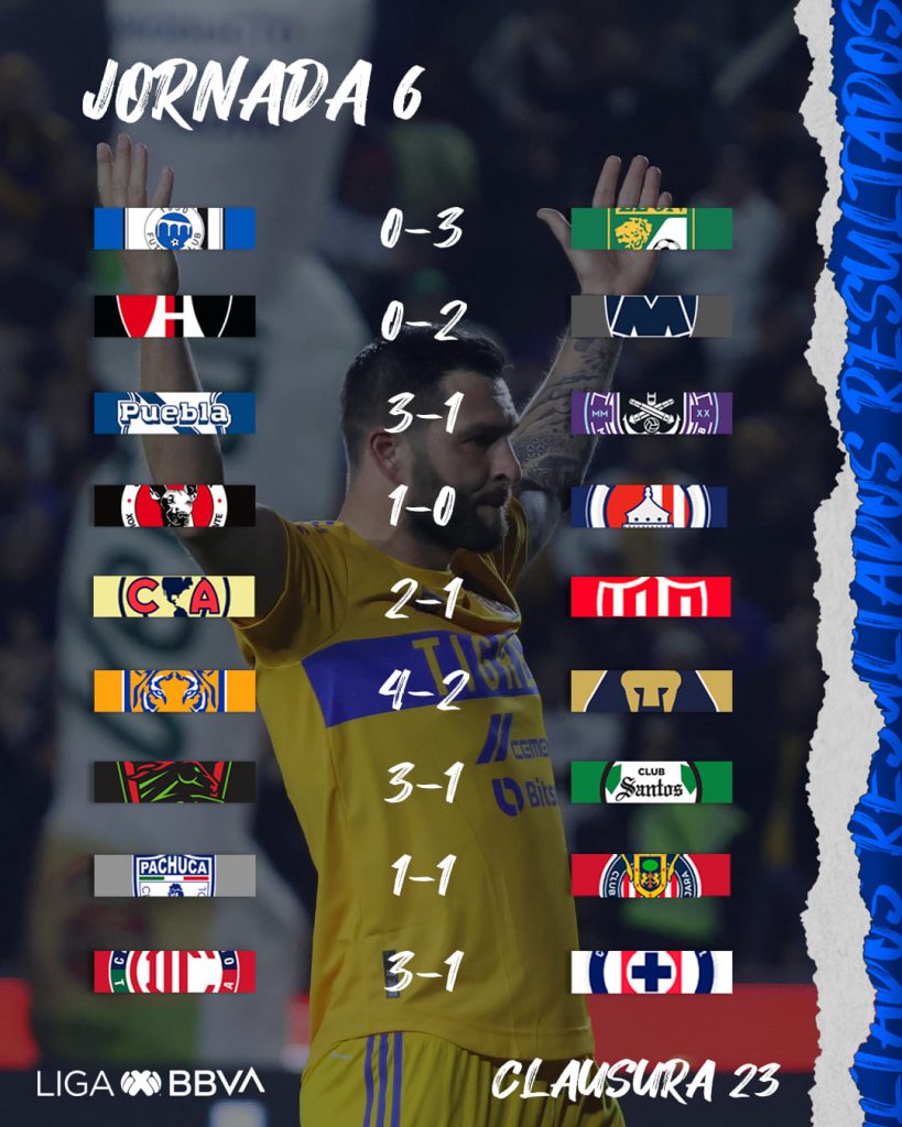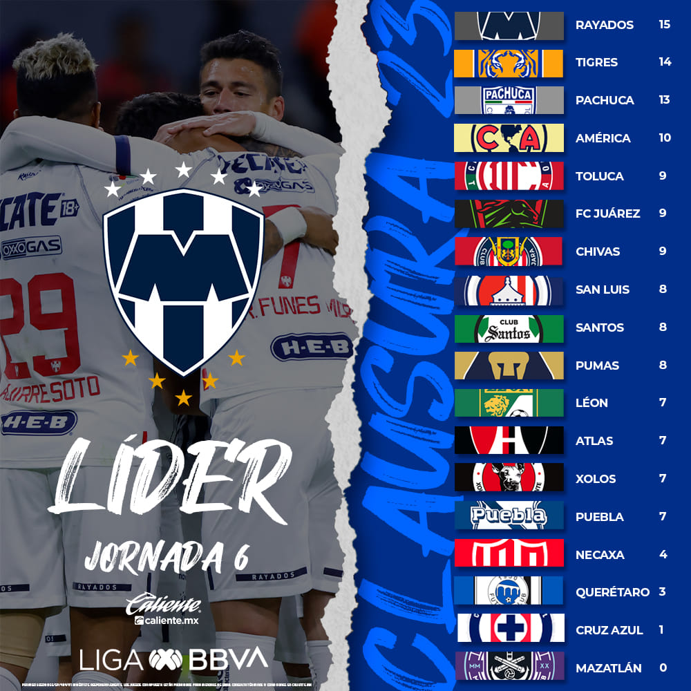 Con 5 victorias de forma consecutiva y 12 goles a favor, Monterrey es líder del Torneo C2023. América regresa a los cuatros primeros luego de su victoria de frente a Necaxa, por su parte, Atlético de San Luis es octavo de la general luego de la derrota ante los Xolos de Tijuana . Mazatlán, Cruz Azul y Querétaro siguen sin ganar en el certamen.