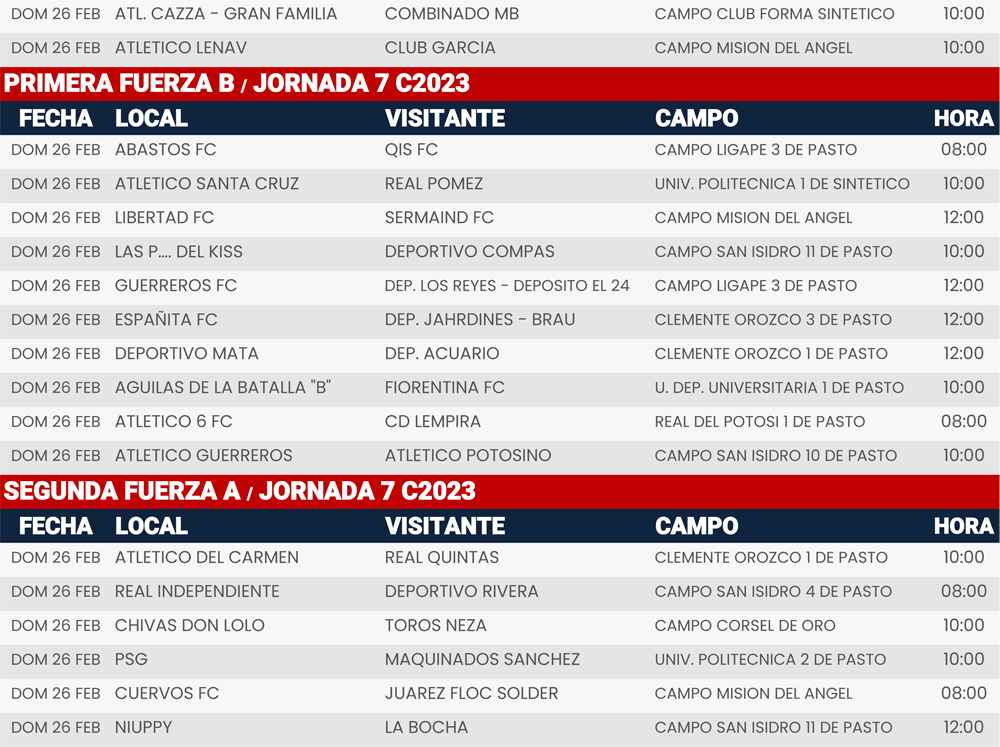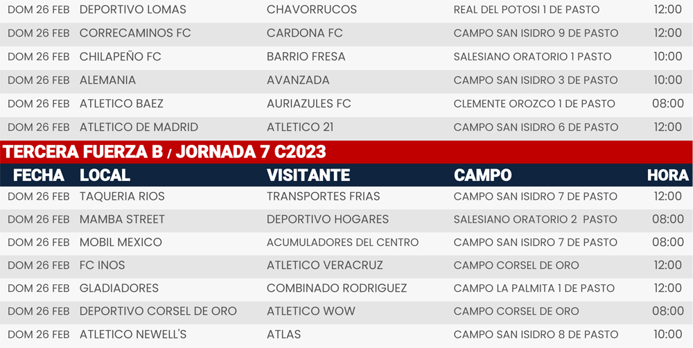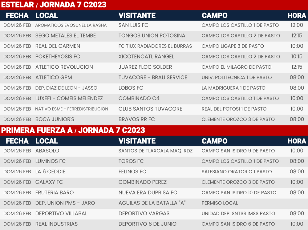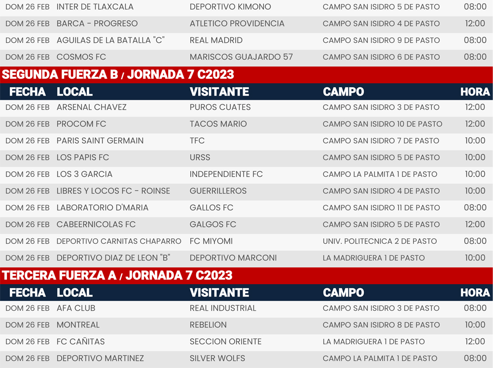 Jornada 7, Super Liga Zona Industrial C2023