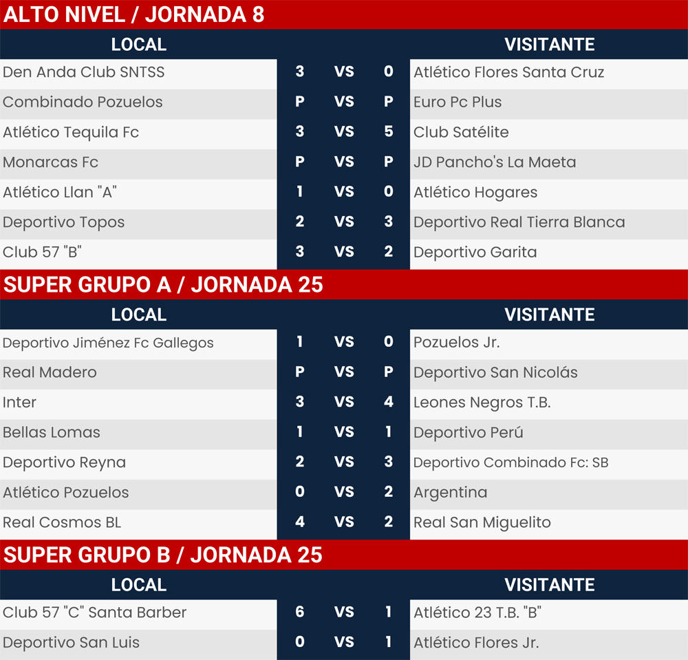 Resultados 25 y 26 de febrero de 2023, Liga Central
