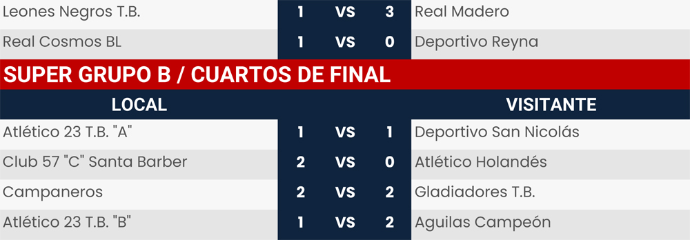 Resultados 11 y 12 de marzo de 2023, Liga Central