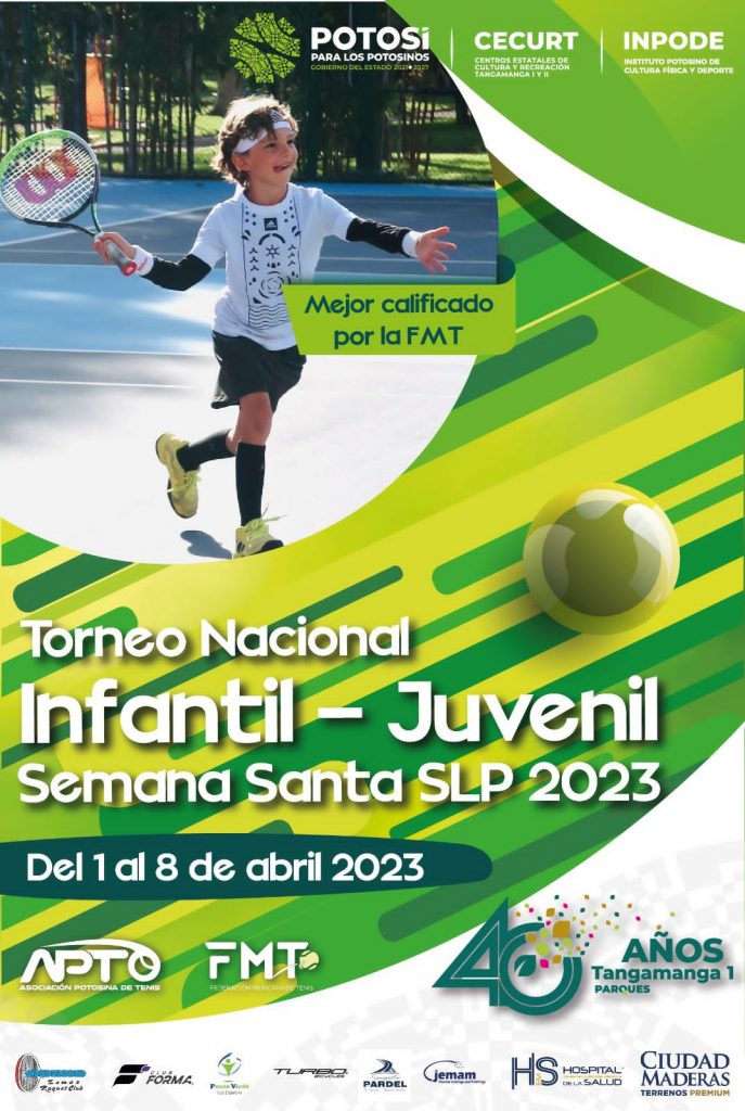 En el marco de las múltiples actividades deportivas, artísticas y culturales para la próxima temporada vacacional de Semana Santa en la entidad, que promueve el Gobierno del cambio que dirige Ricardo Gallardo Cardona, se llevará a cabo el Torneo Nacional Infantil y Juvenil de Tenis, del primero al 8 de abril, con una importante derrama económica al concentrar a más de 700 personas entre jugadores, familiares, entrenadores y personal de logística.
