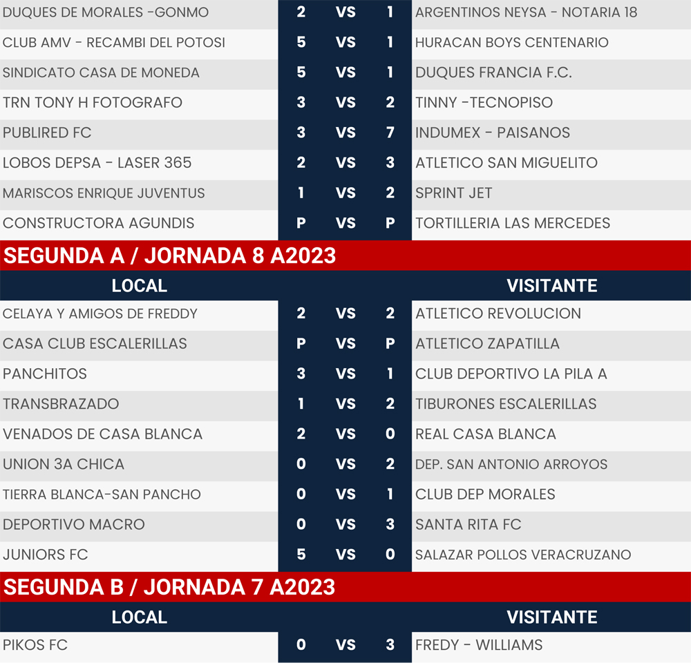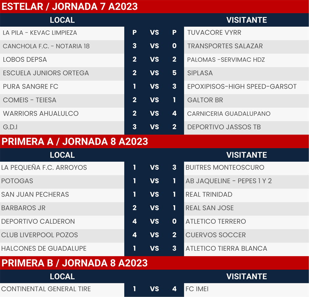 Resultados Jornada 7 y 8, Liga Tangamanga A2023