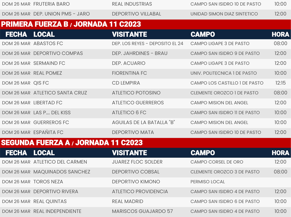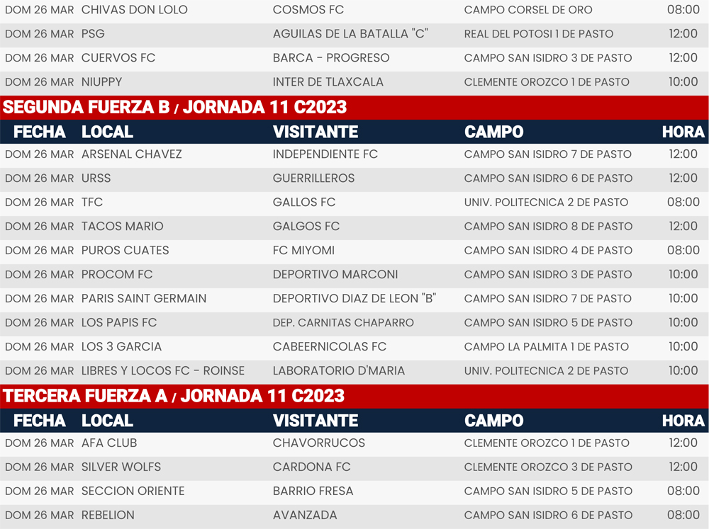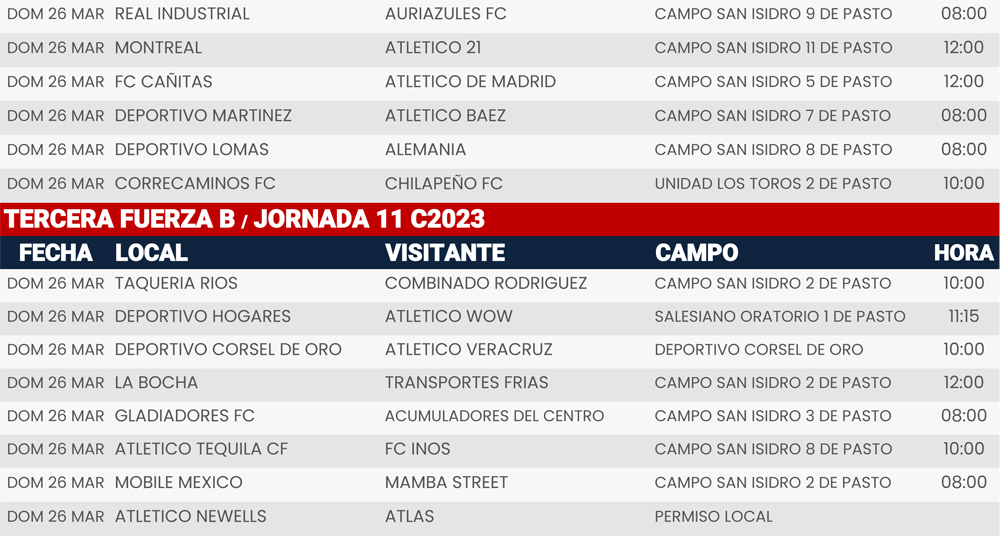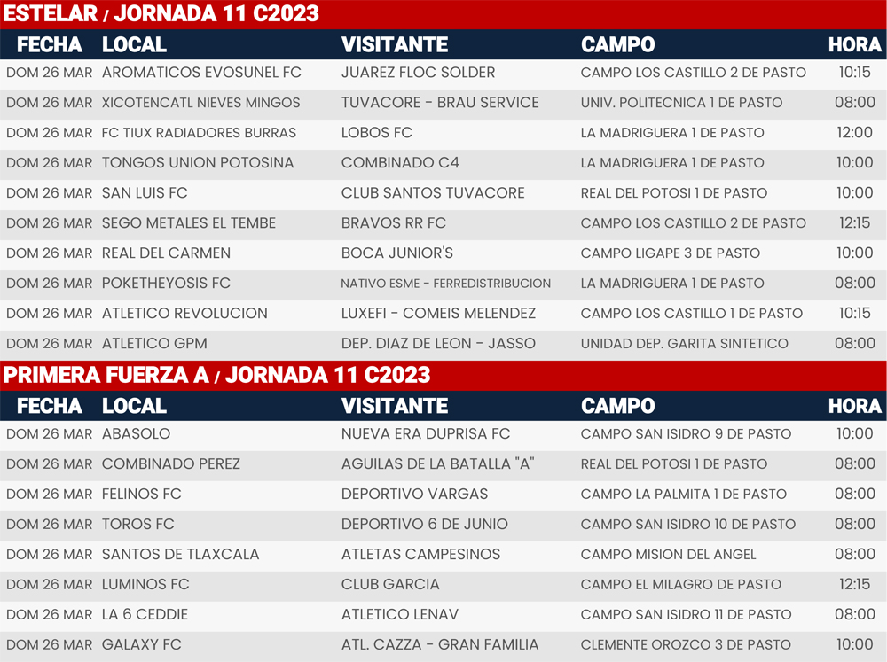 Jornada 11, Super Liga Zona Industrial C2023