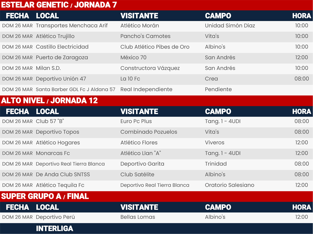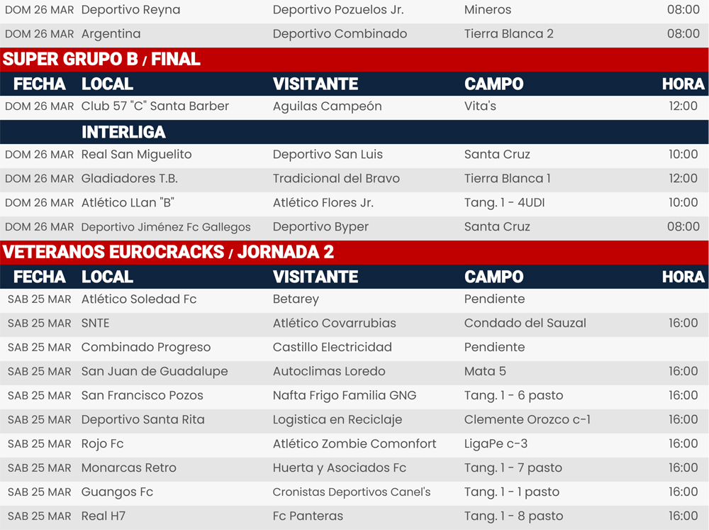 Rol de juegos 25 y 26 de marzo de 2023, Liga Central
