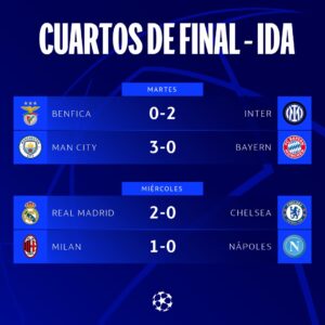Resultados Cuartos de Final ida Champions League, 11 y 12 de abril