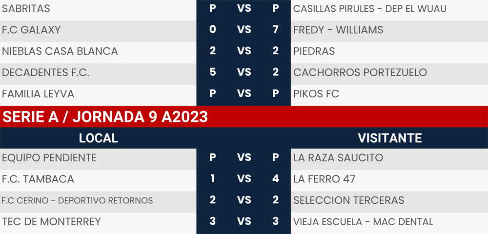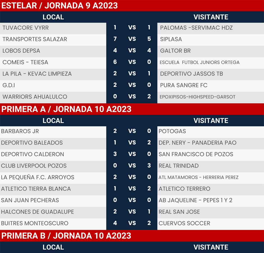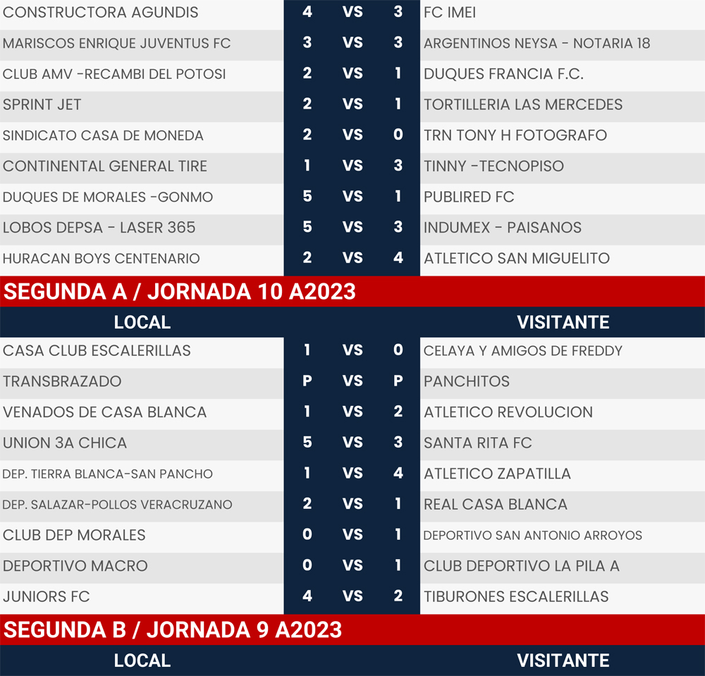Resultados Jornada 9 y 10, Liga Tangamanga A2023