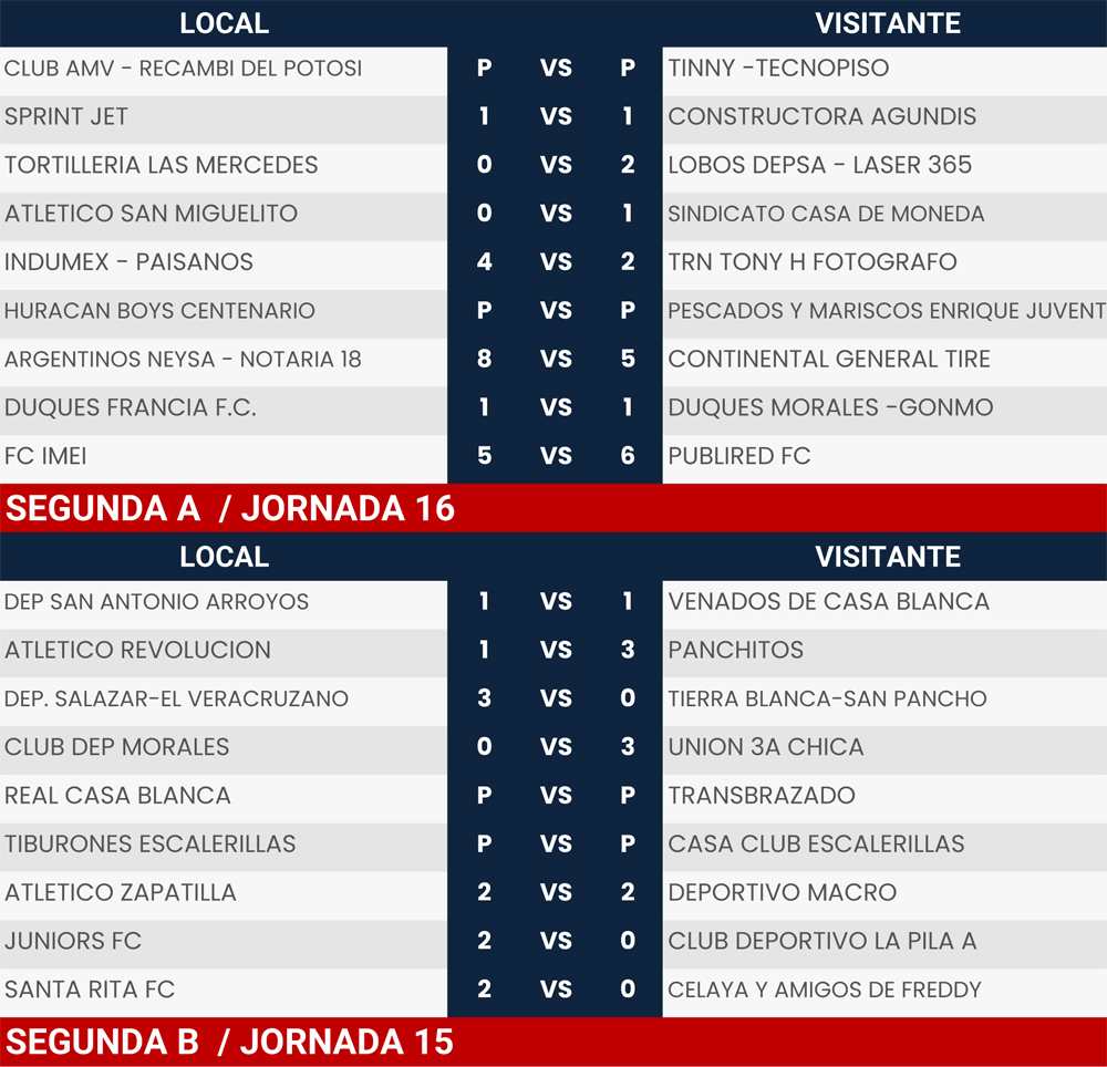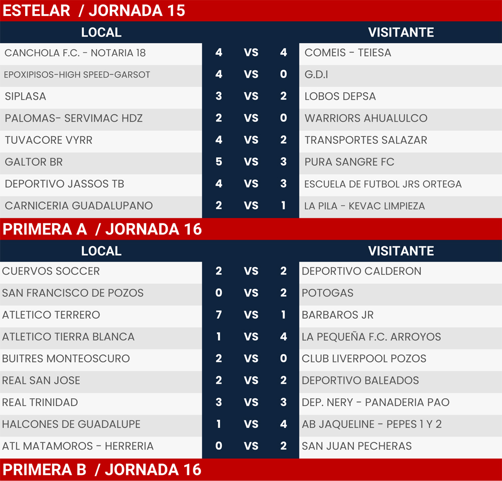 Resultados Jornada 15 y 16, Liga Tangamanga A2023
