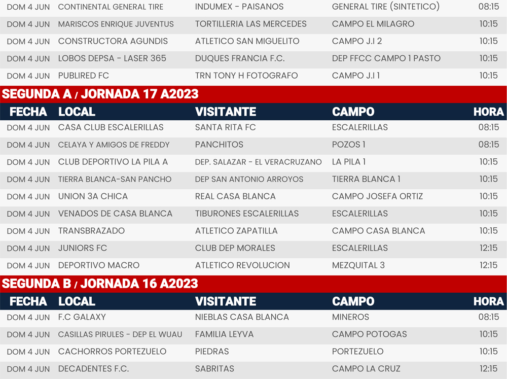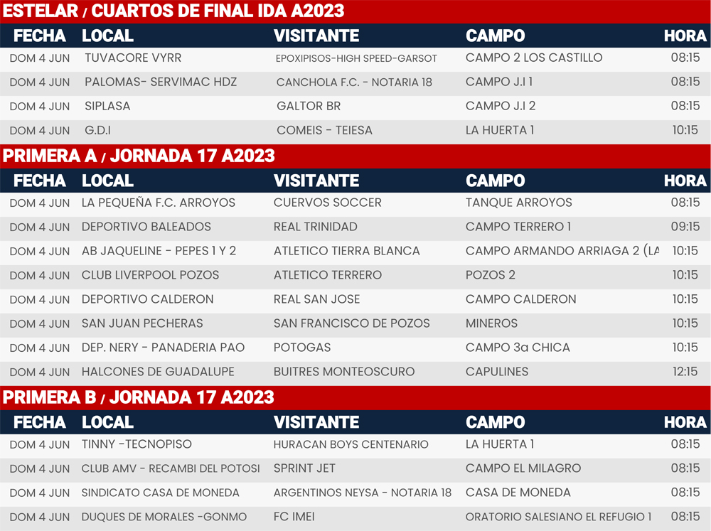 Cuartos de Final ida y Jornada 16-17, Liga Tangamanga A2023