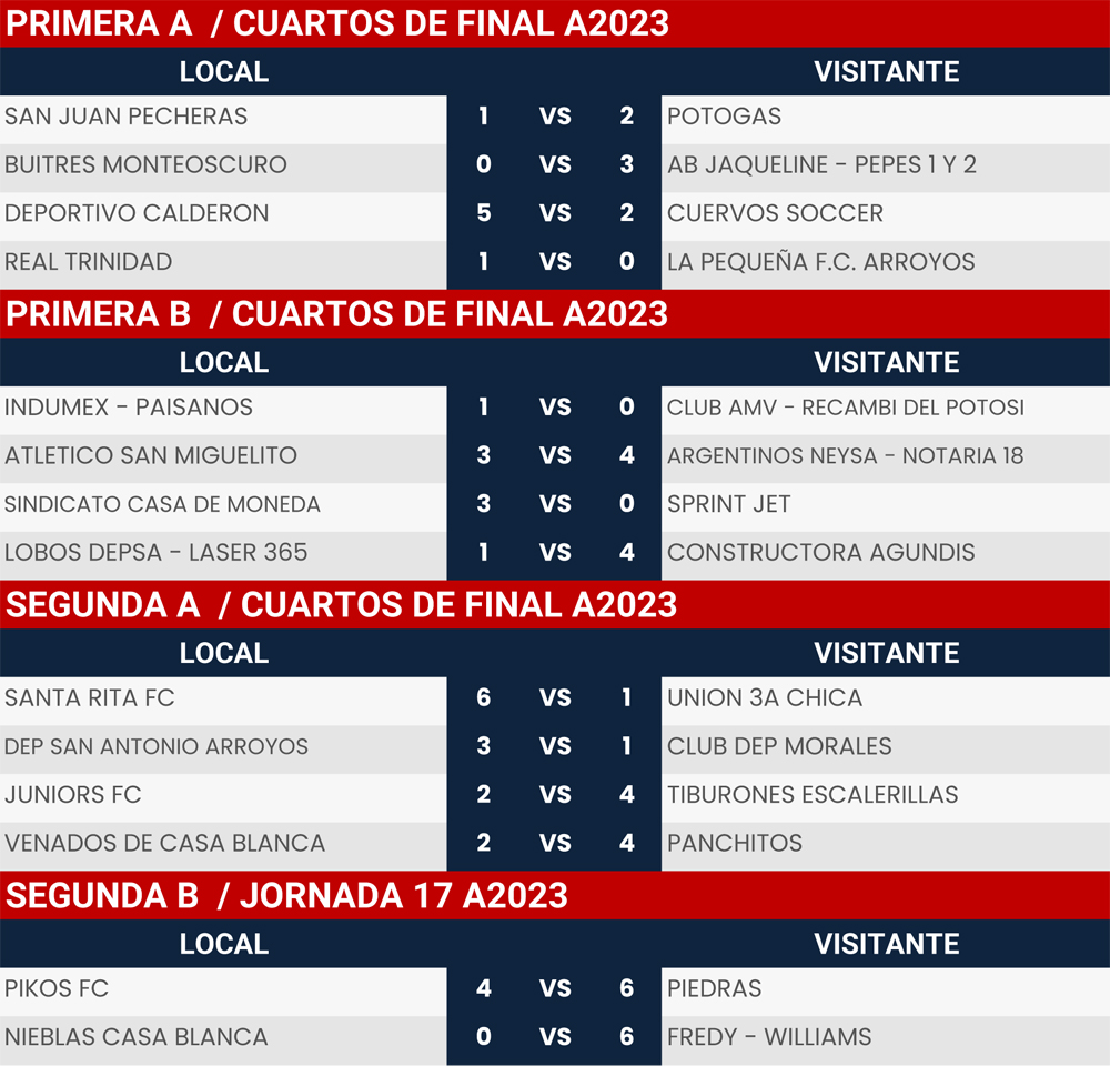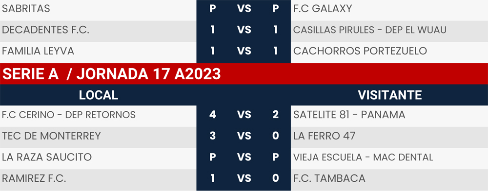 Resultados Cuartos de Final y Jornada 17, Liga Tangamanga A2023
