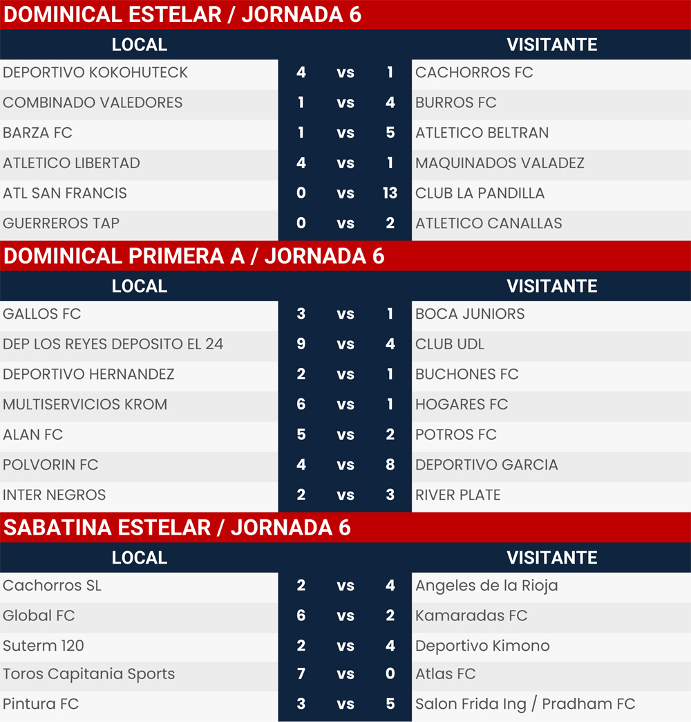 Resultados Jornada 6, Liga San Isidro