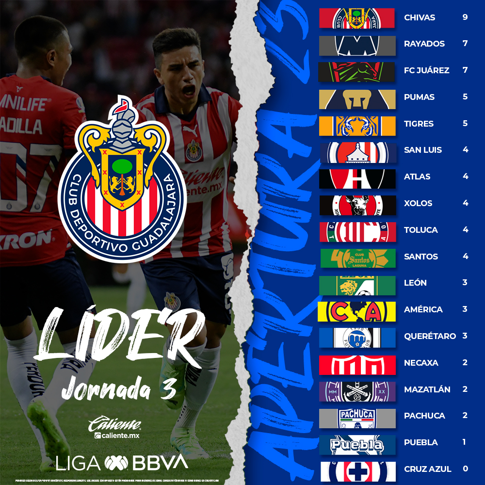 El Rebaño se mantiene en el liderato con paso perfecto, seguido por Monterrey y los Bravos de Juárez que han dado la sorpresa en lo que va del torneo.