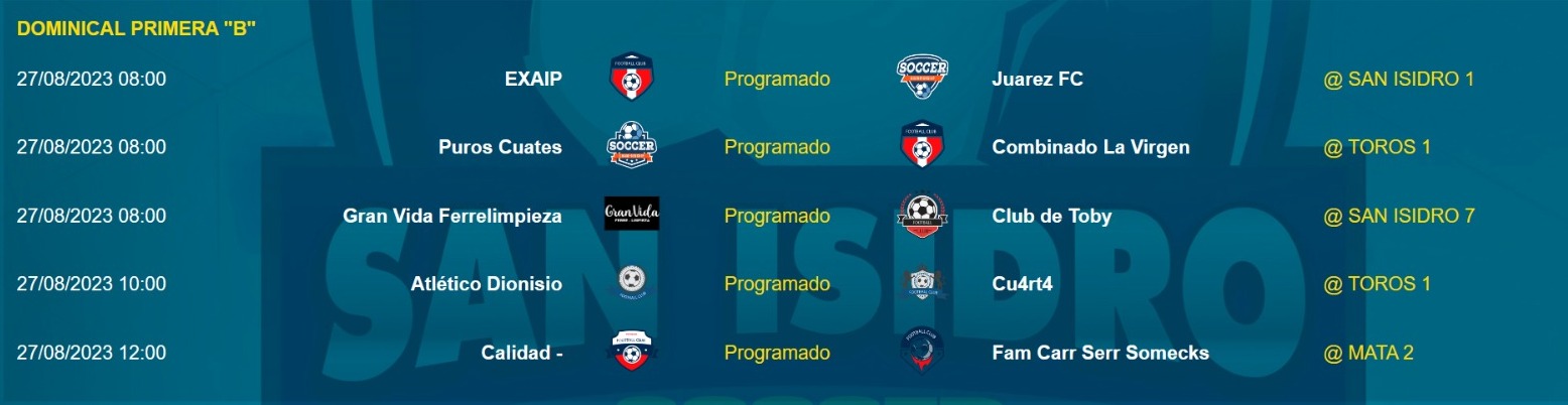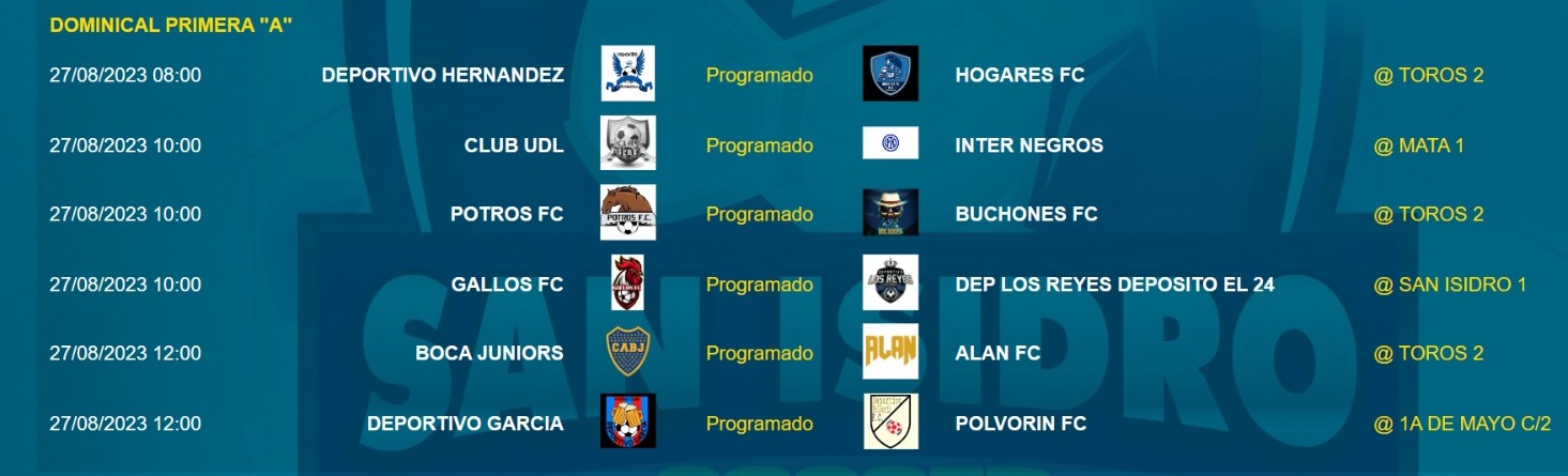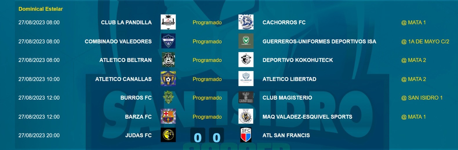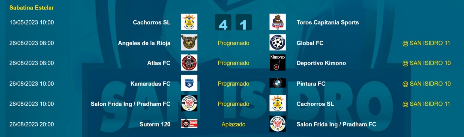 Rol de juegos Jornada 14 y 5, Liga San Isidro