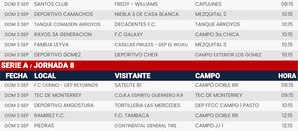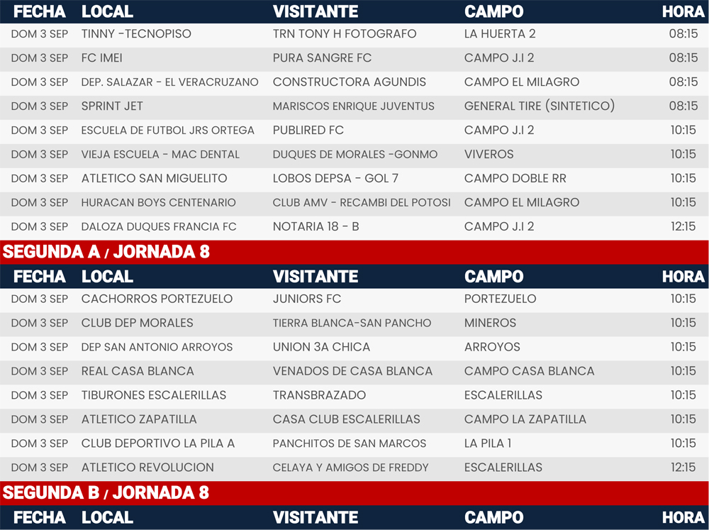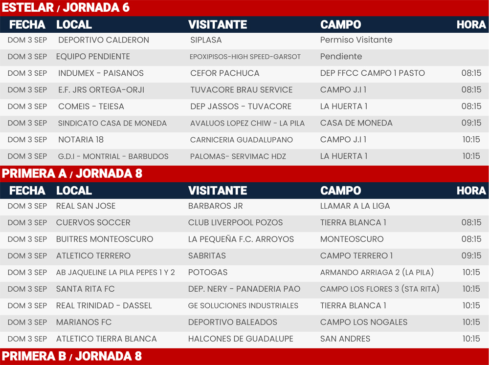 Rol de juegos Jornada 6 y 8, Liga Tangamanga C2023