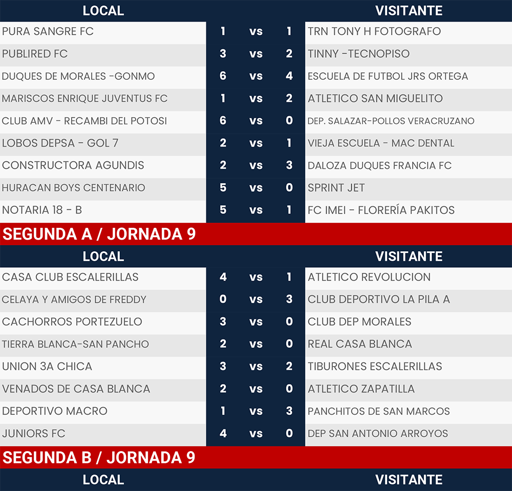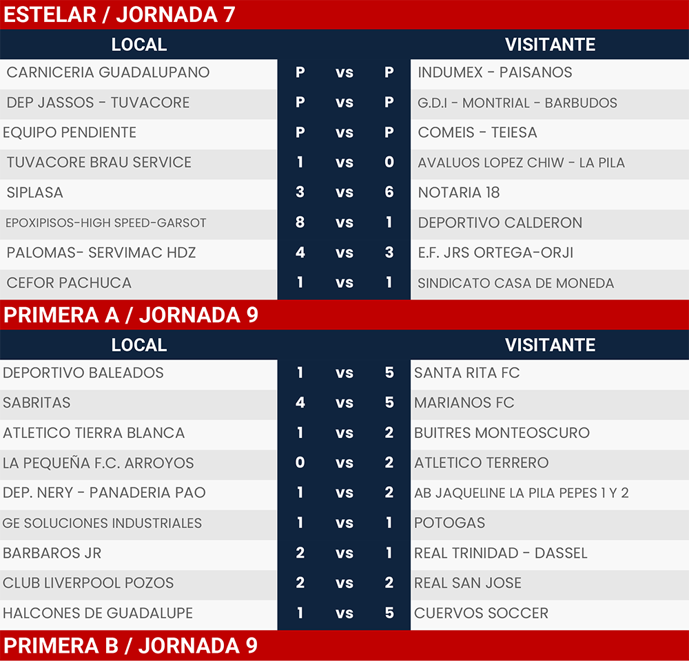 Resultados Jornada 7 y 9, Liga Tangamanga C2023