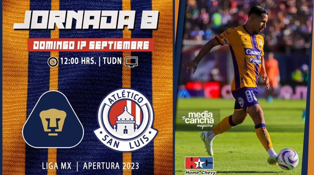 El líder del Apertura 2023 visita a un irregular Pumas en el Olímpico Universitario en la fecha 8 el torneo. San Luis lleva 5 victorias al hilo e incluso con un empate en la octava jornada culminará como líder, aunque el objetivo son los 3 puntos como visitantes, mientras que el cuadro felino viene de caer como visitante ante Santos Laguna y se ubican décimos con 9 unidades.