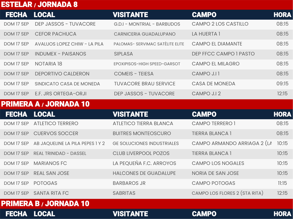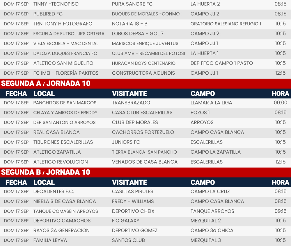 Rol de juegos Jornada 8 y 10, Liga Tangamanga C2023