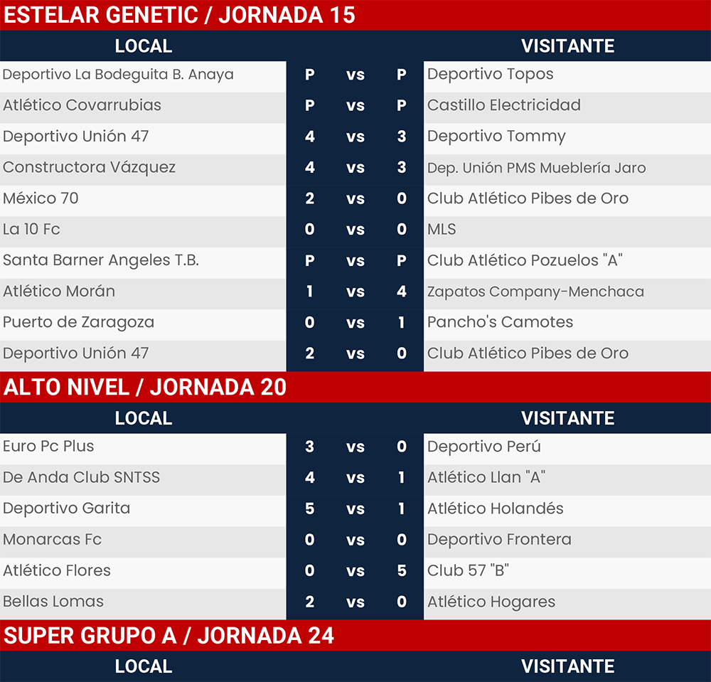 Resultados 16 y 17 de septiembre 2023, Liga Central