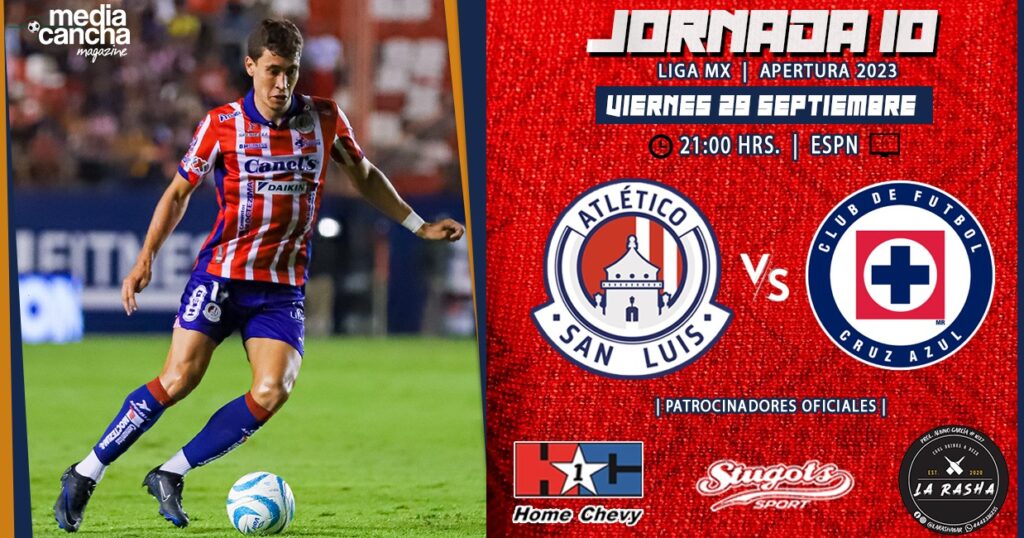El Atlético de San Luis busca mantener el invicto en casa y seguir colocado en la cima de la tabla general. Partido correspondiente a la jornada 10 del torneo Apertura 2023 en la Liga BBVA MX en donde el conjunto potosino recibe la visita del sotanero de la tabla general, el equipo de Cruz Azul quien no ha tenido un buen torneo y que buscará sacar los 3 puntos de visita al Alfonso Lastras.