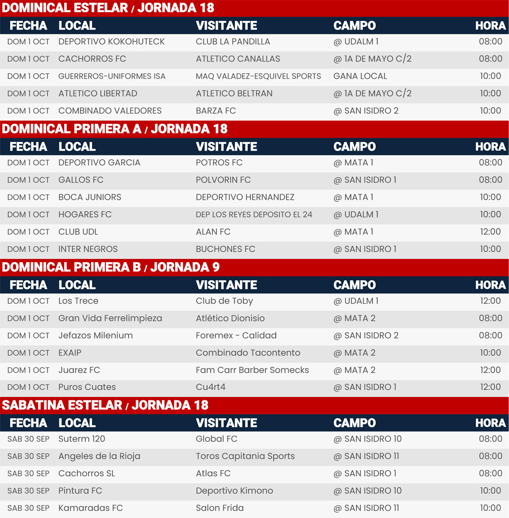 Rol de juegos Jornada 16 y 7, Liga San Isidro