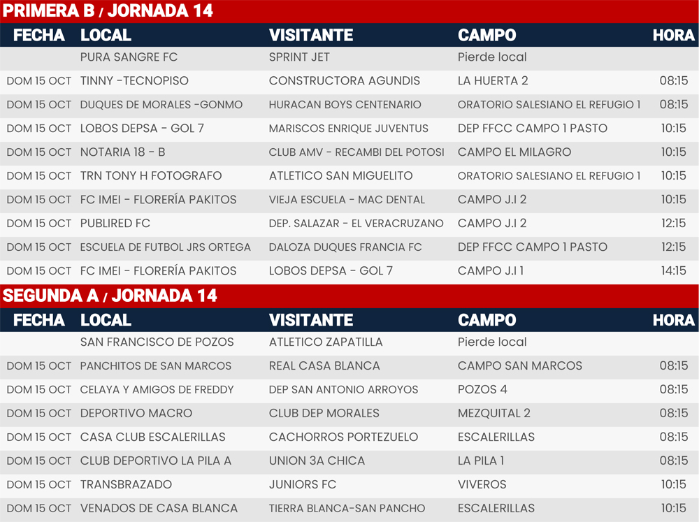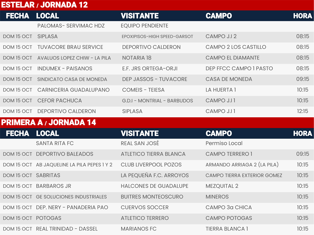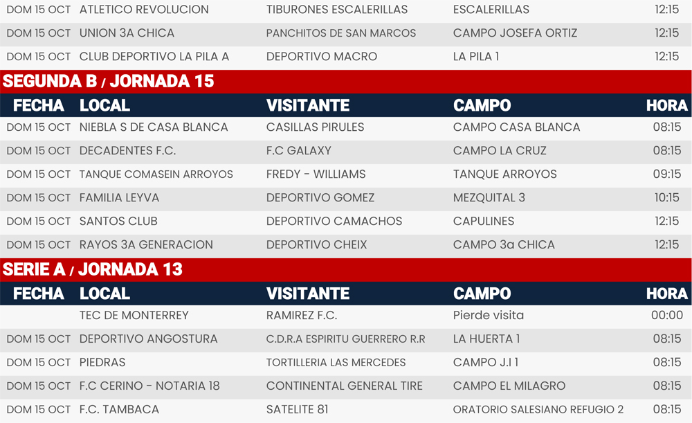 Rol de juegos Jornada 12, 13, 14 y 15, Liga Tangamanga C2023