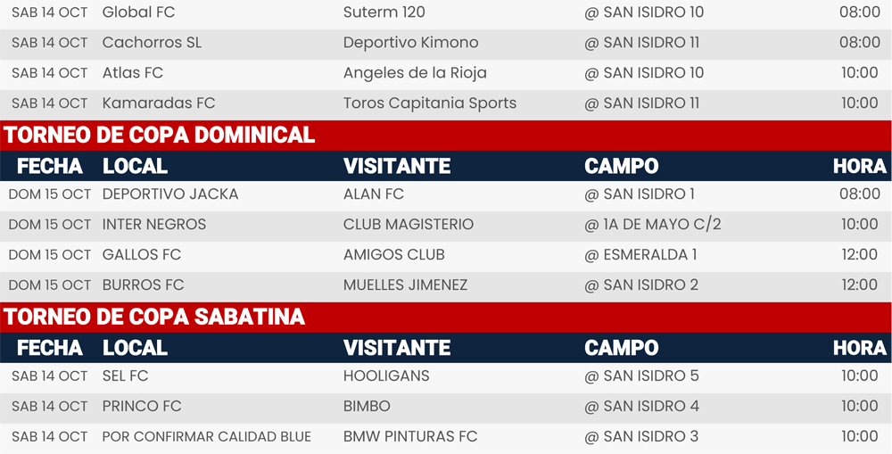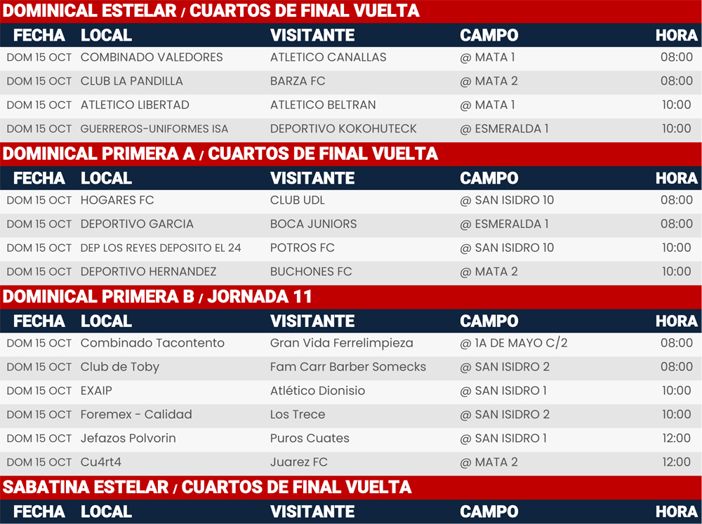 Rol de juegos Liguilla y Jornada 11, Liga San Isidro