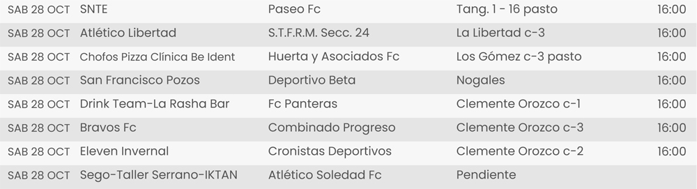 Rol de juegos 28 y 29 de octubre 2023, Liga Central