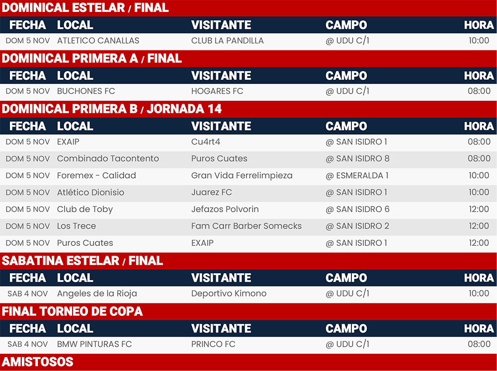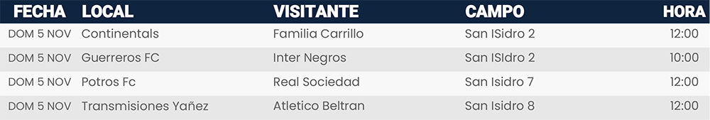 Rol de juegos Liguilla y Jornada 13, Liga San Isidro