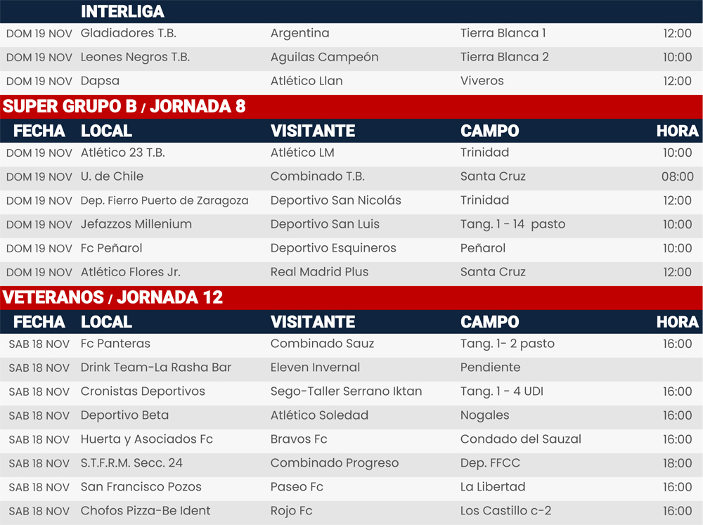 Rol de juegos 11 y 12 de noviembre 2023, Liga Central