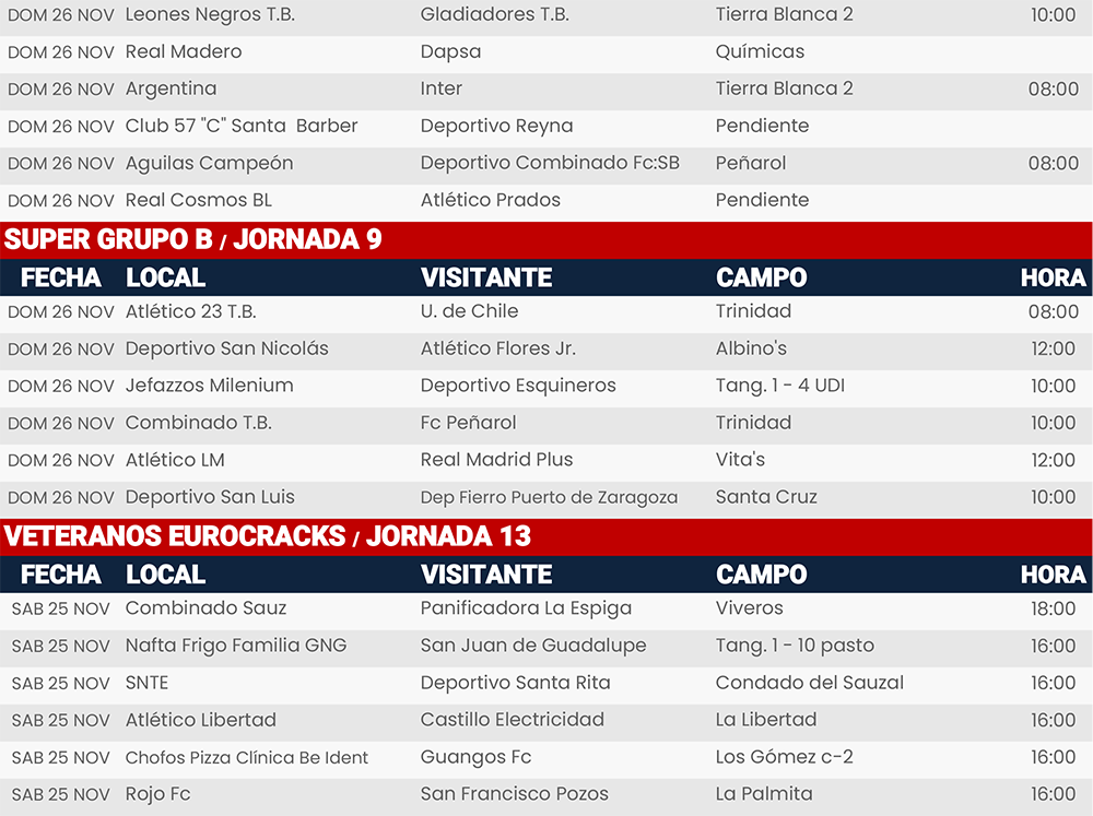 Rol de juegos 25 y 26 de noviembre 2023, Liga Central