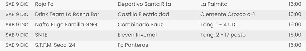 Rol de juegos 9 y 10 de diciembre 2023, Liga Central