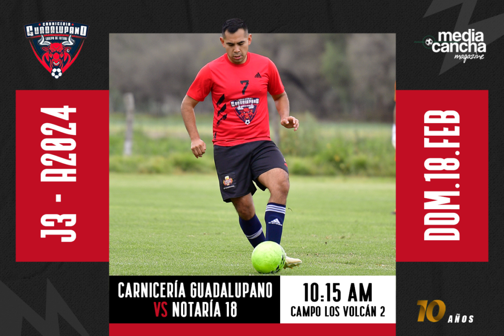 El rival de este domingo para los Guadalupanos será el equipo de Notaria 18, actual campeón de la categoría por lo que los Guadalupanos quieren dar la campanadas mantener su contundencia frente al arco rival y con ello sumar 3 puntos fundamentales ante uno de los equipos de mayor jerarquía.