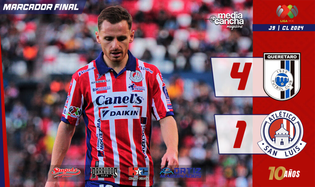 Querétaro se lleva el Clásico de la 57 con goleada frente a San Luis que suma siete partidos sin ganar y hace más complicada la clasificación a la fase final del torneo.