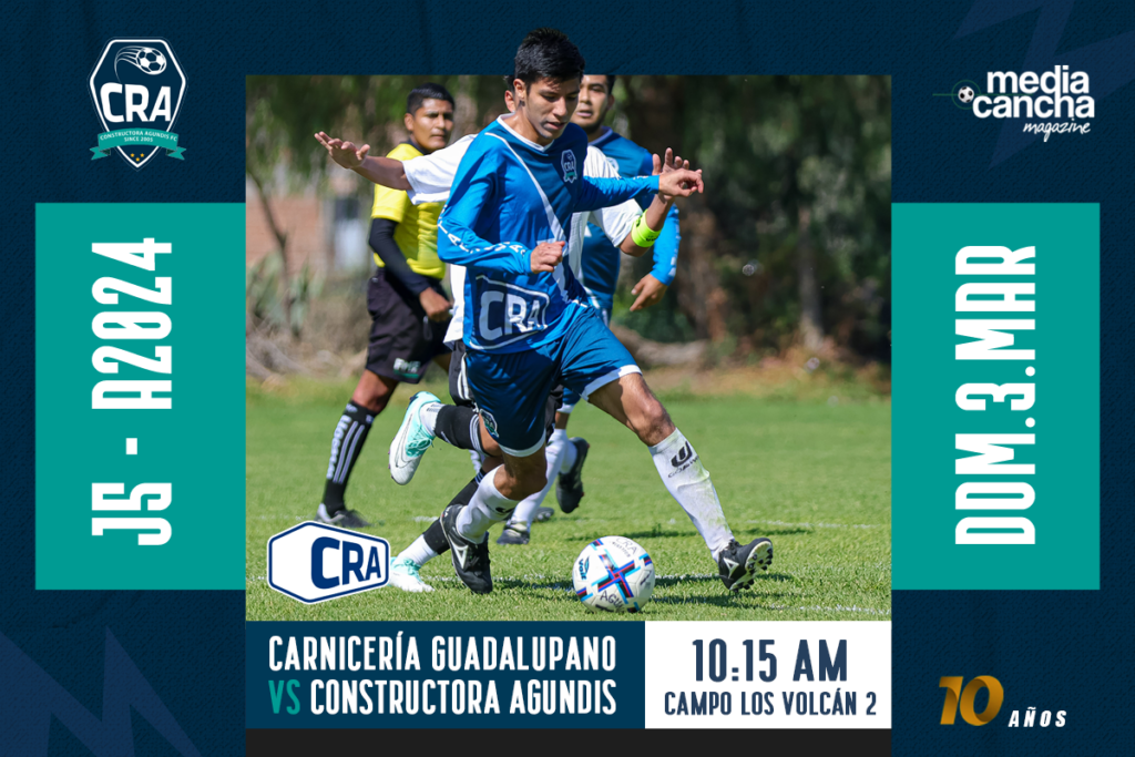 Este domingo Constructora Agundis ya no quiere más distracciones durante los 90 minutos, y con la mentalidad a tope y la determinación de salir de la mala racha, enfrentarán al equipo de Carnicería Guadalupano en donde se espera un duelo muy cerrado donde la propuesta sea por Agundis ya que son los obligados a sumar unidades sí o sí.