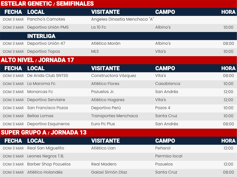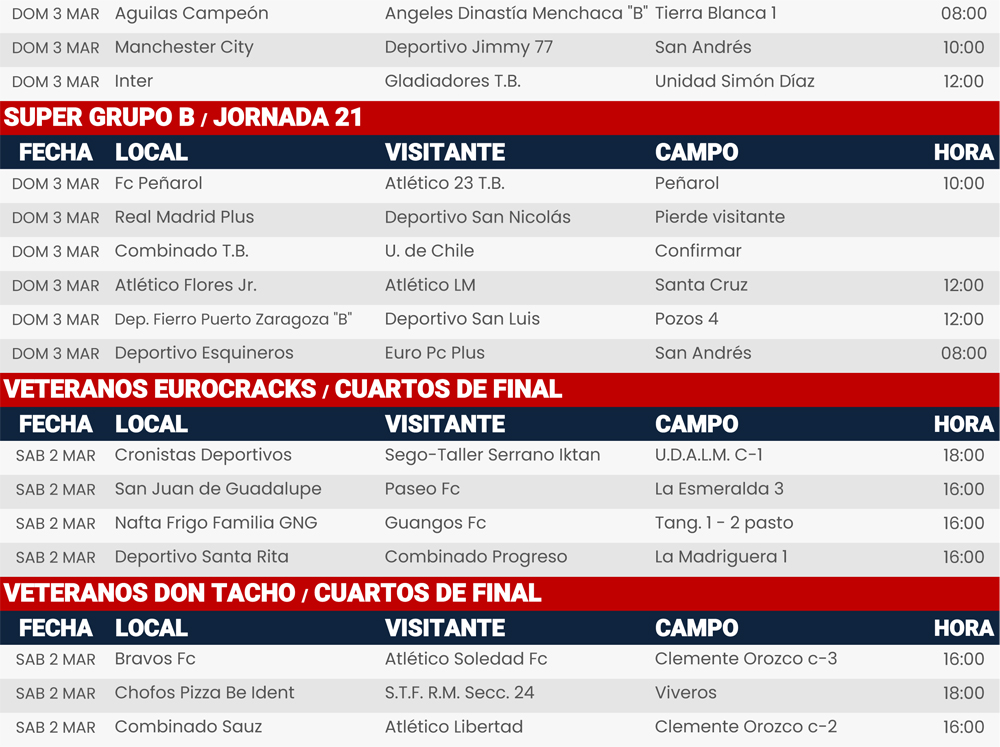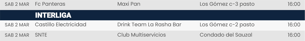 Rol de juegos 2 y 3 de marzo 2024, Liga Central