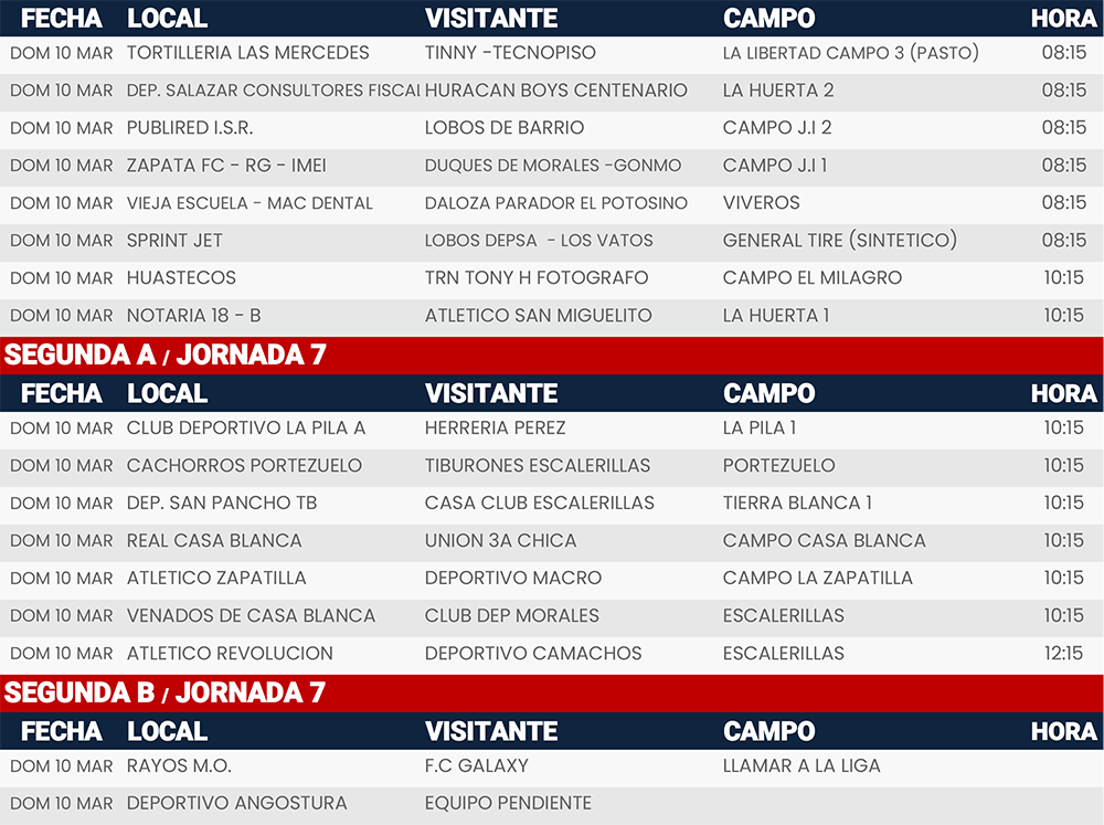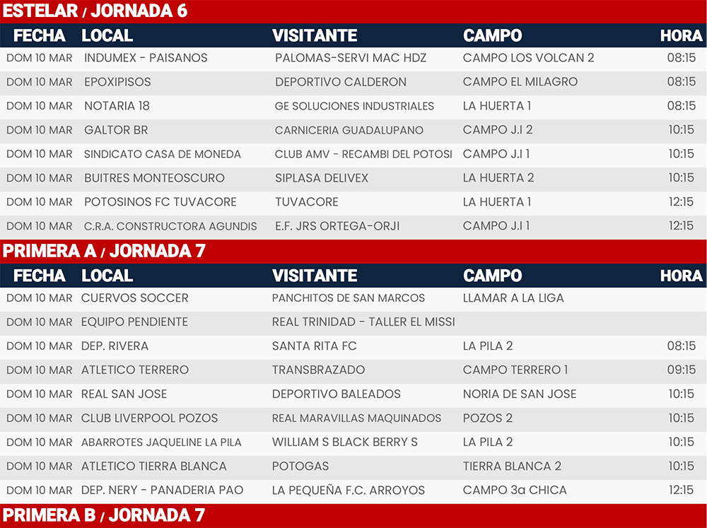Rol de juegos Jornada 6 y 7, Liga Tangamanga A2024