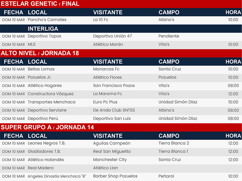 Rol de juegos 2 y 3 de marzo 2024, Liga Central