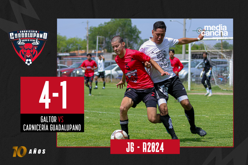 Derrota para Carnicería Guadalupano en esta jornada 6, la segunda del torneo luego de que enfrentarán a Galtor el día a de ayer en un partido tal y como se esperaba, muy complejo en todas las zonas del campo y que de no ser precavido podría llevarse un descalabro doloroso tal y como sucedió en donde Galtor aprovecho los descuidos y sucumbió el arco de los Guadalupanos en 4 ocasión.