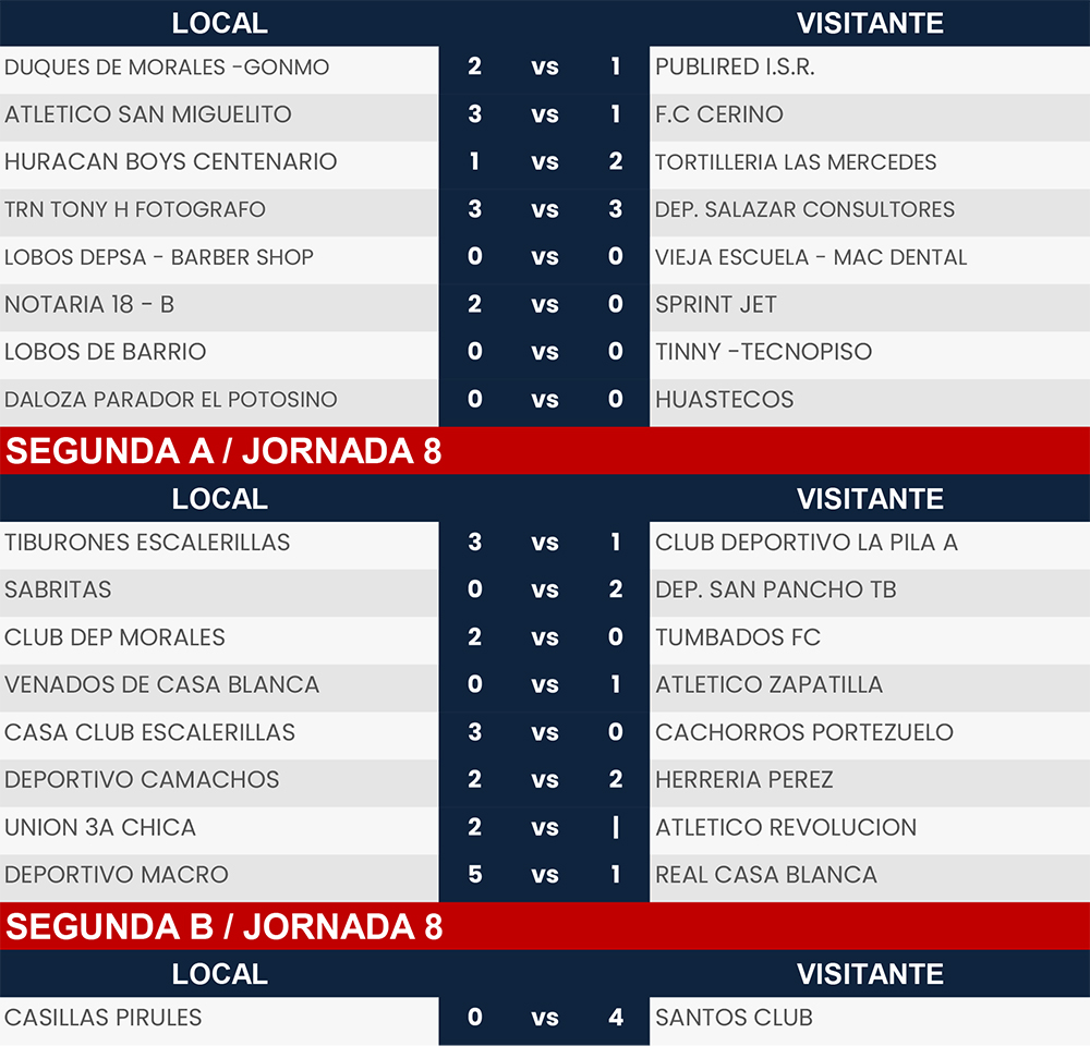 Resultados Jornada 7 y 8, Liga Tangamanga A2024