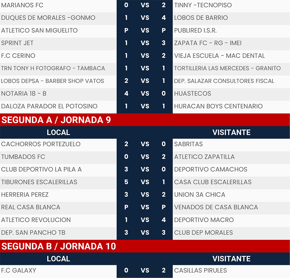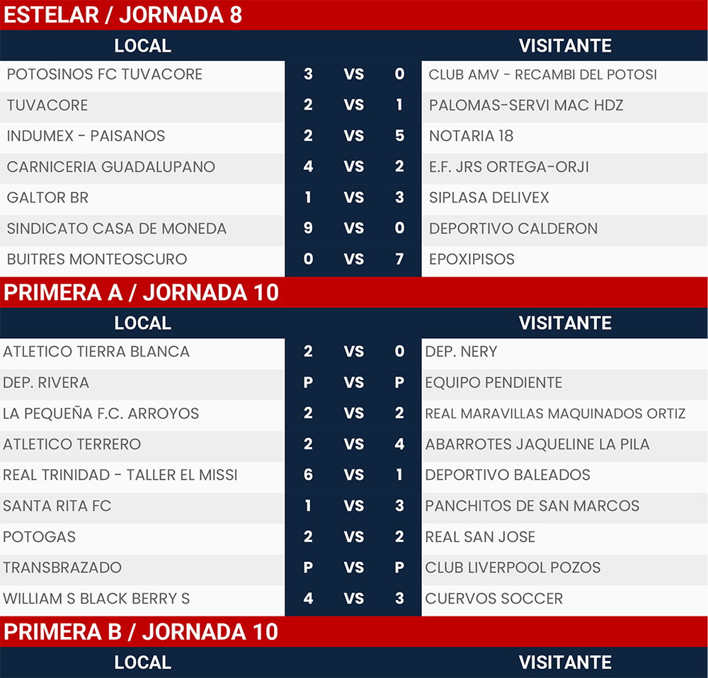 Resultados Jornada 8, 9 y 10, Liga Tangamanga A2024